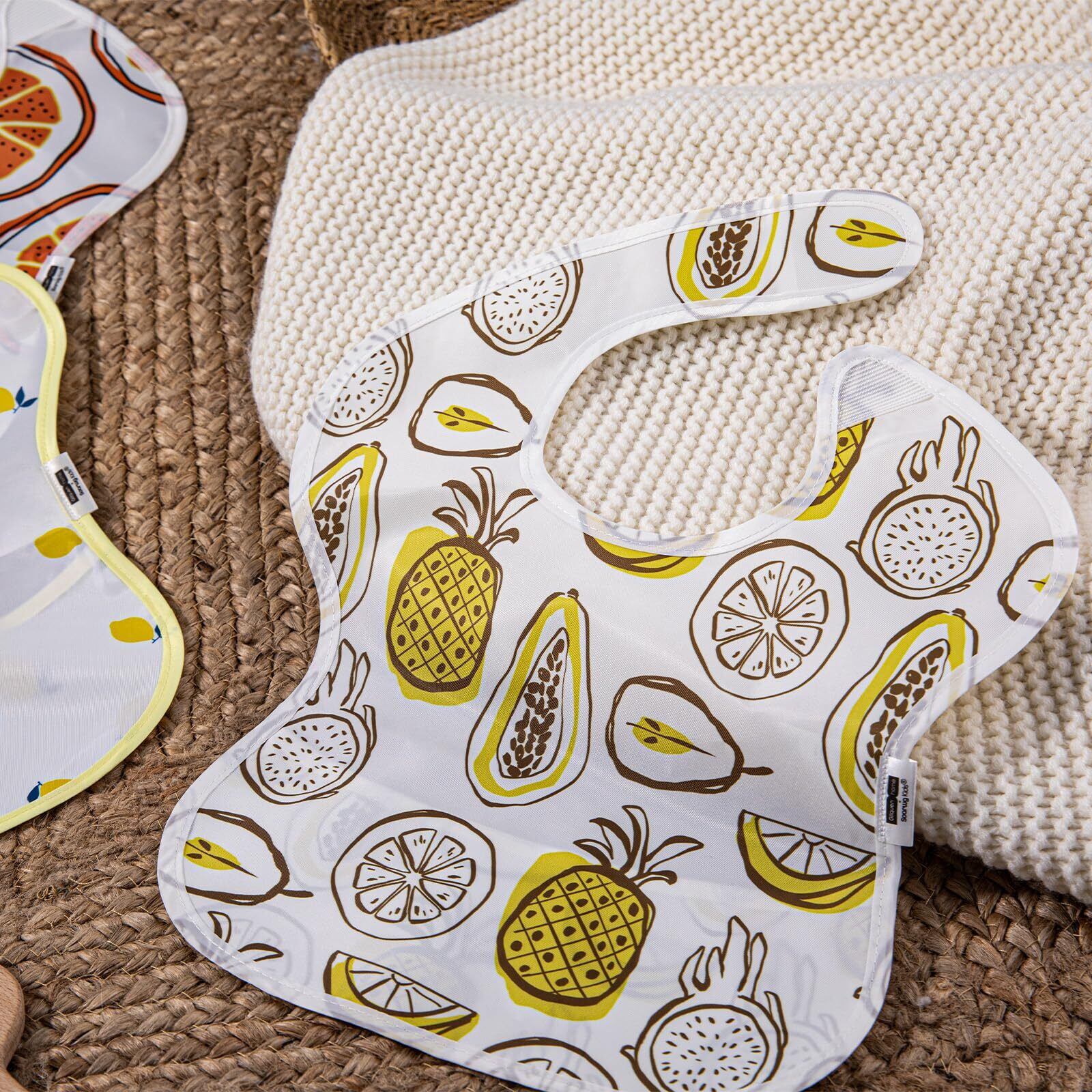 [GLLQUEN BABY] 食事エプロン 離乳食エプロン 保育園エプロン 5点セット ベビー 子供 汚れ防止 フリーサイズ 防水 洗濯機可能 調節可能 BPAとフタル酸塩なし 旅行に最適 防水お食事エプロン