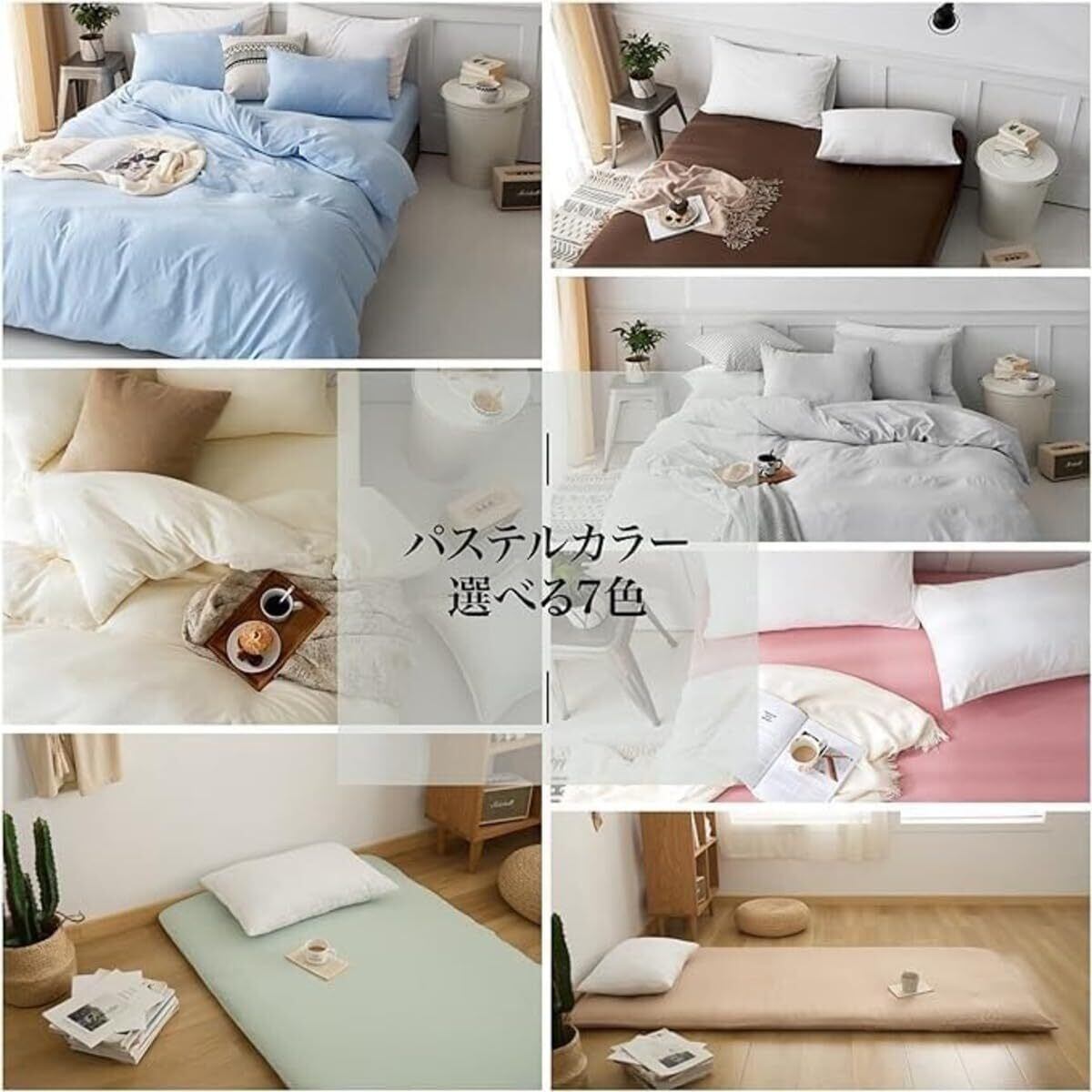 【豊富なカラーバリエーション】淡いパステル調の7色をご用意。シンプル無地のやさしい色合いは様々なお部屋に合います。同じ色で統一して揃えるも良し、柄物のカバーと組み合わせてもお洒落にまとまります。