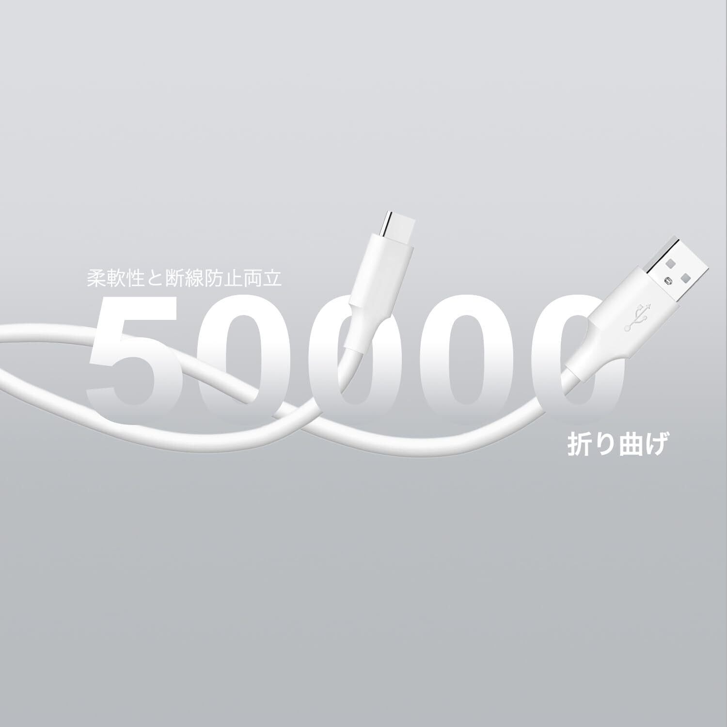 【高い耐久性】このたいぷcケーブルは柔軟性と引張強度が優れ、より柔らかく、軽く、耐久性が高く、50,000回以上の厳しい曲げテストに合格しています。