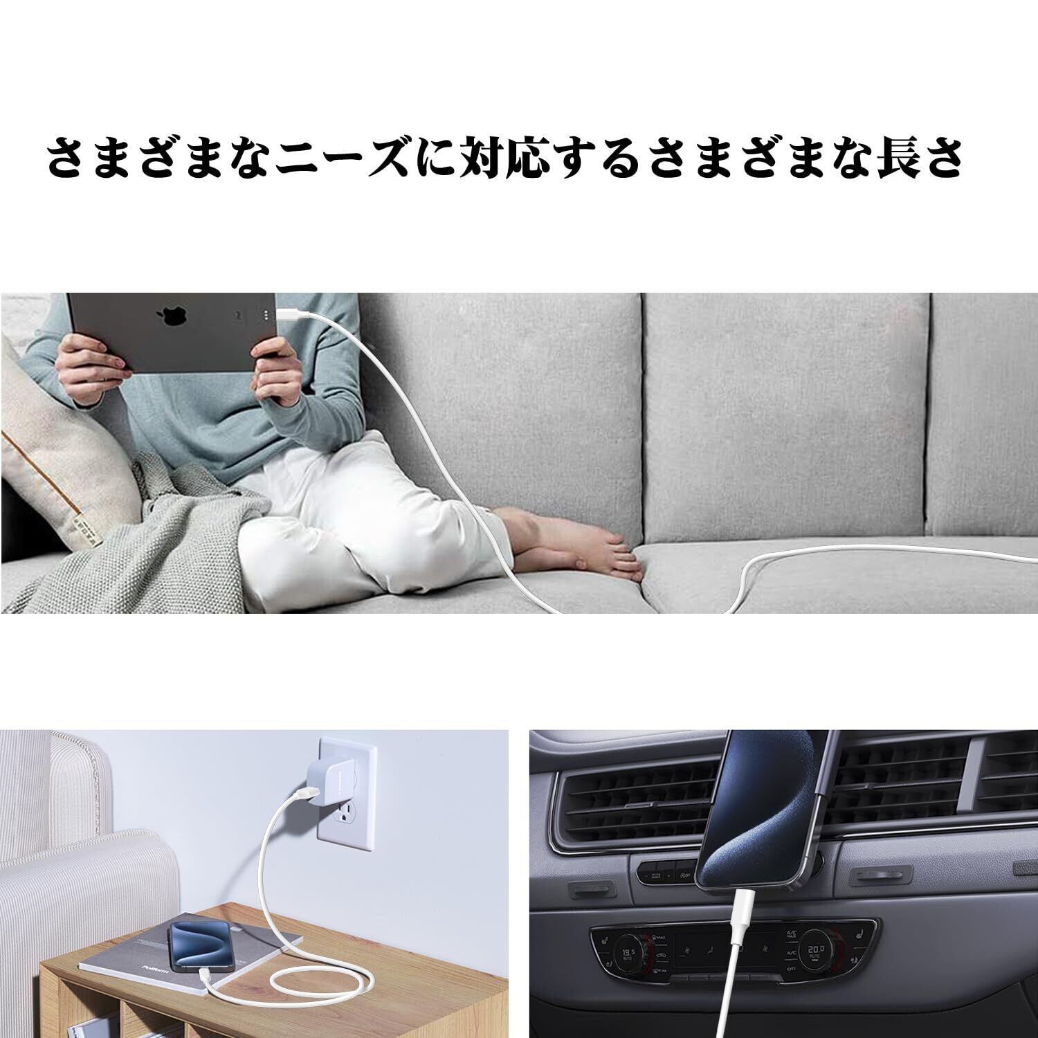 【ユニバーサル互換性】iPhone15/16、iPhone15/16 Plus、iPhone15/16 Pro、iPhone15/16 Pro Max、Sony Xperia、Samsung Galaxy、Google Pixelなどのスマートフォンはもちろん、タブレットやノートパソコンなど、さまざまなデバイスとの完全な互換性を備えています。幅広い充電ニーズに応えます。