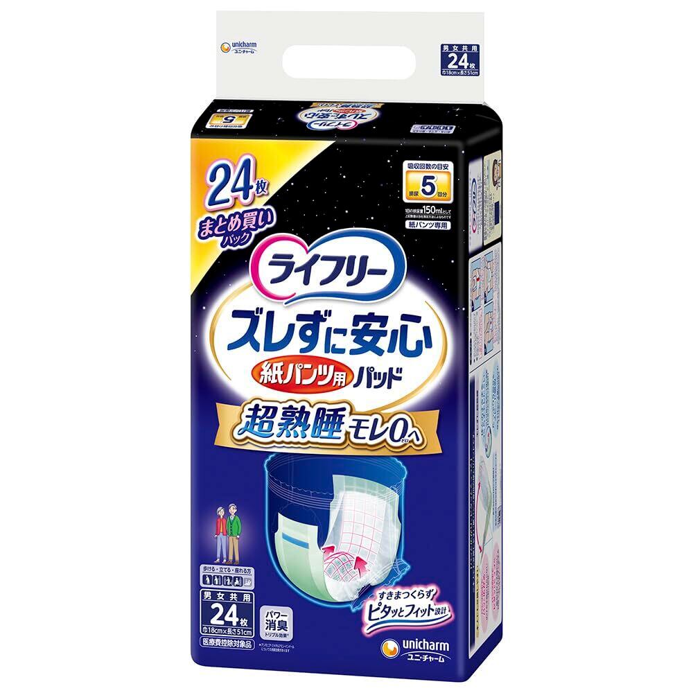 ライフリー パンツ用尿とりパッド ズレずに安心紙パンツ専用 夜用スーパー 5回吸収 24枚