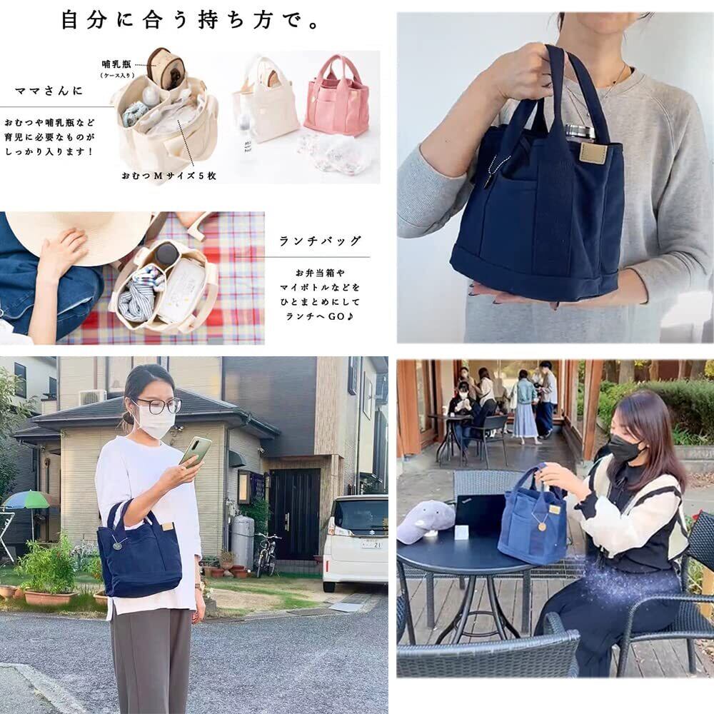 ヒント:外にはもう一つのポケットがあります。鍵、携帯などを置くことができます。ミニ トートバッグはお弁当箱やペットボトルがすっぽり入り、ランチバッグにピッタリ。