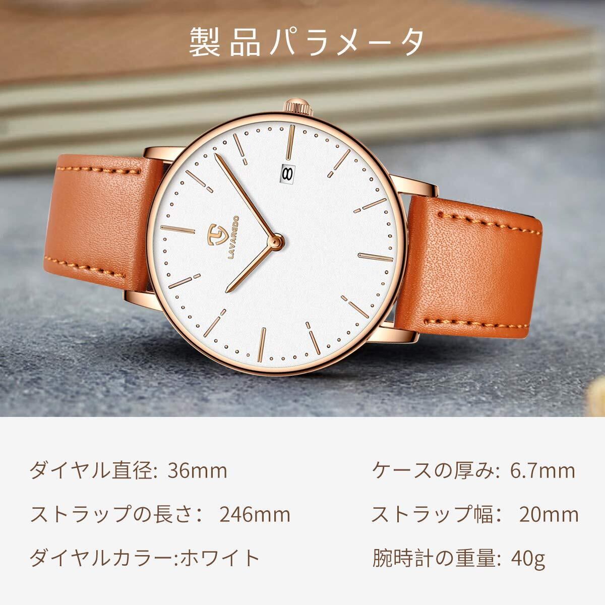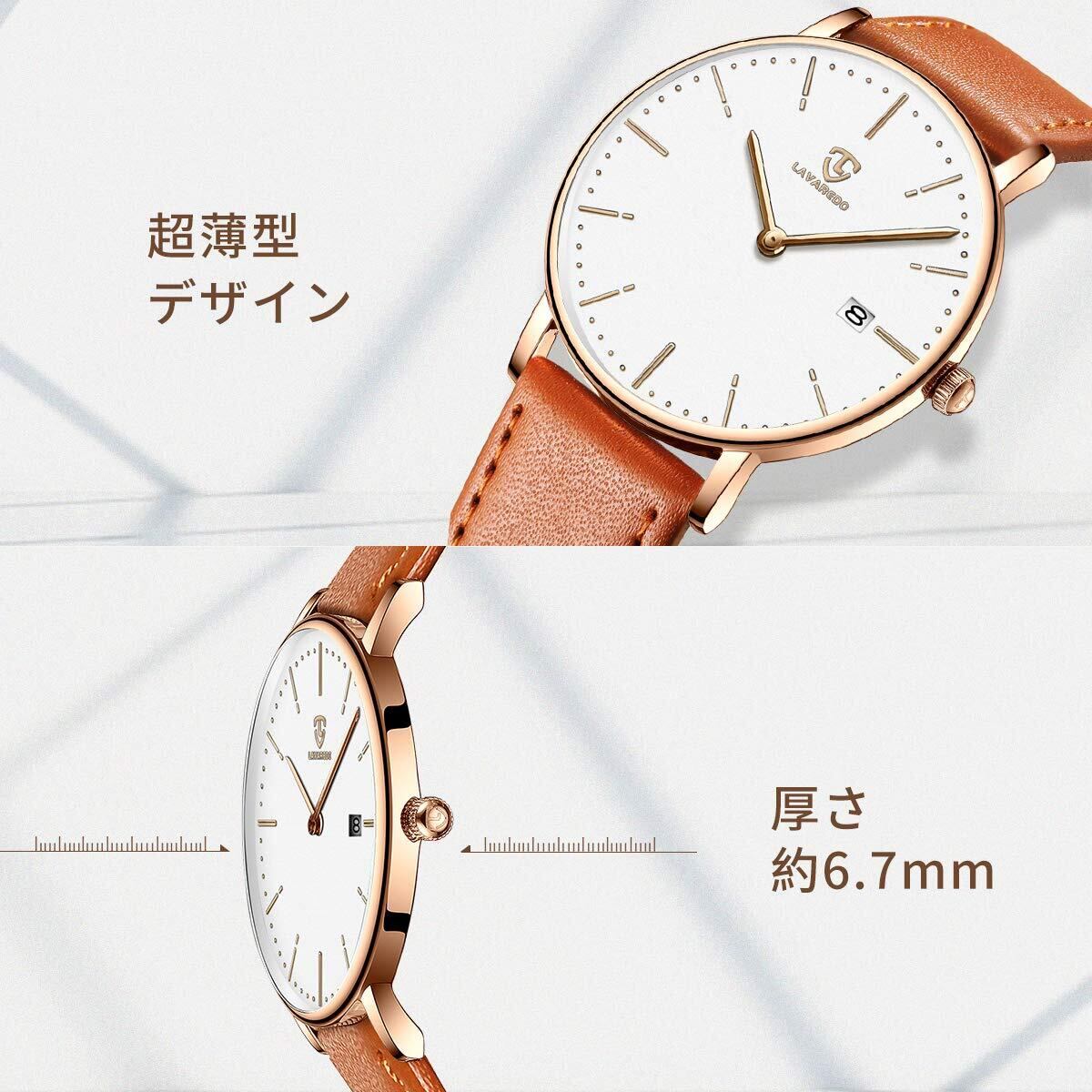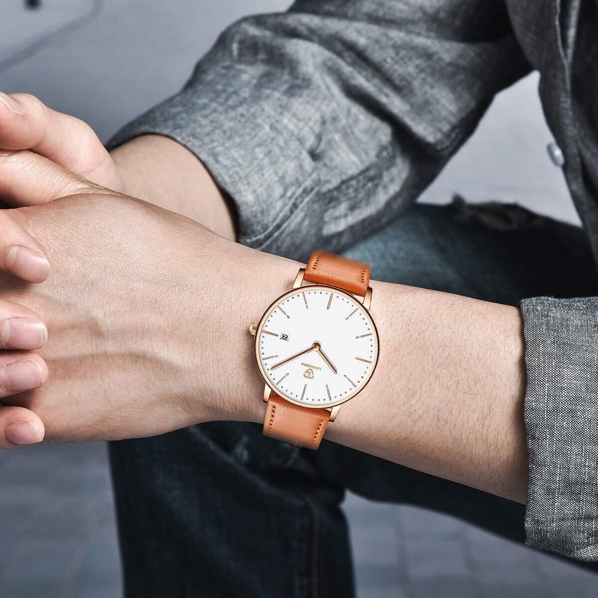 [BEN NEVIS] 腕時計 メンズ シンプル おしゃれ 薄型 カジュアル 日付表示 防水 アナログ クォーツ時計 革ベルト ホワイト オレンジ