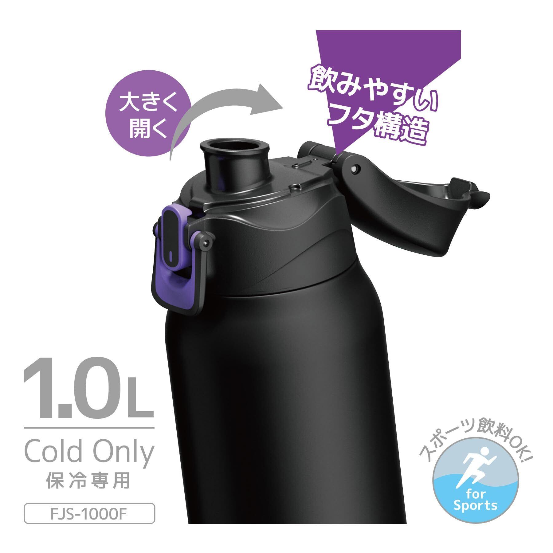 サーモス 水筒 真空断熱スポーツボトル 1L ブラックパープル 保冷専用 子供用 ポーチ付き 肩に優しいストラップ FJS-1000F BKPL