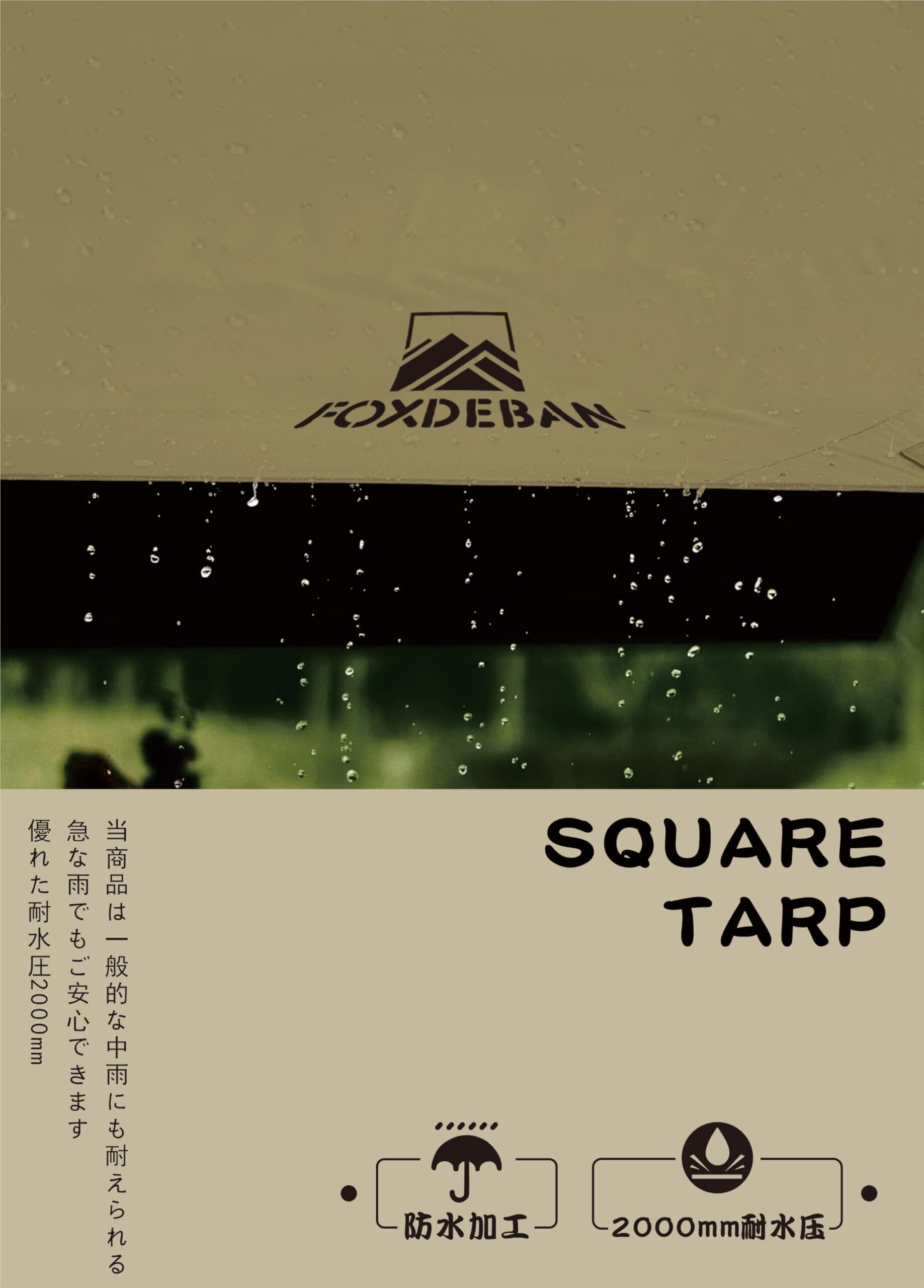 Foxdeban 防水キャンプタープ たーぷテント 軽量コンパク設置簡単 日除け 雨よけ 防風 断熱材 遮光 紫外線uvカット 高耐水圧3000 300D高密度生地 防水収納ケース付 UVカット ピクニック アウトドア バーベキュー 4人用 (カーキ, 300×300CM)