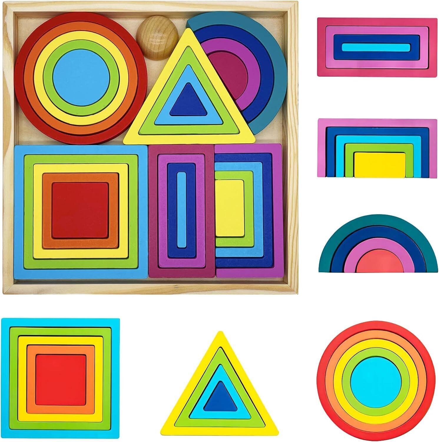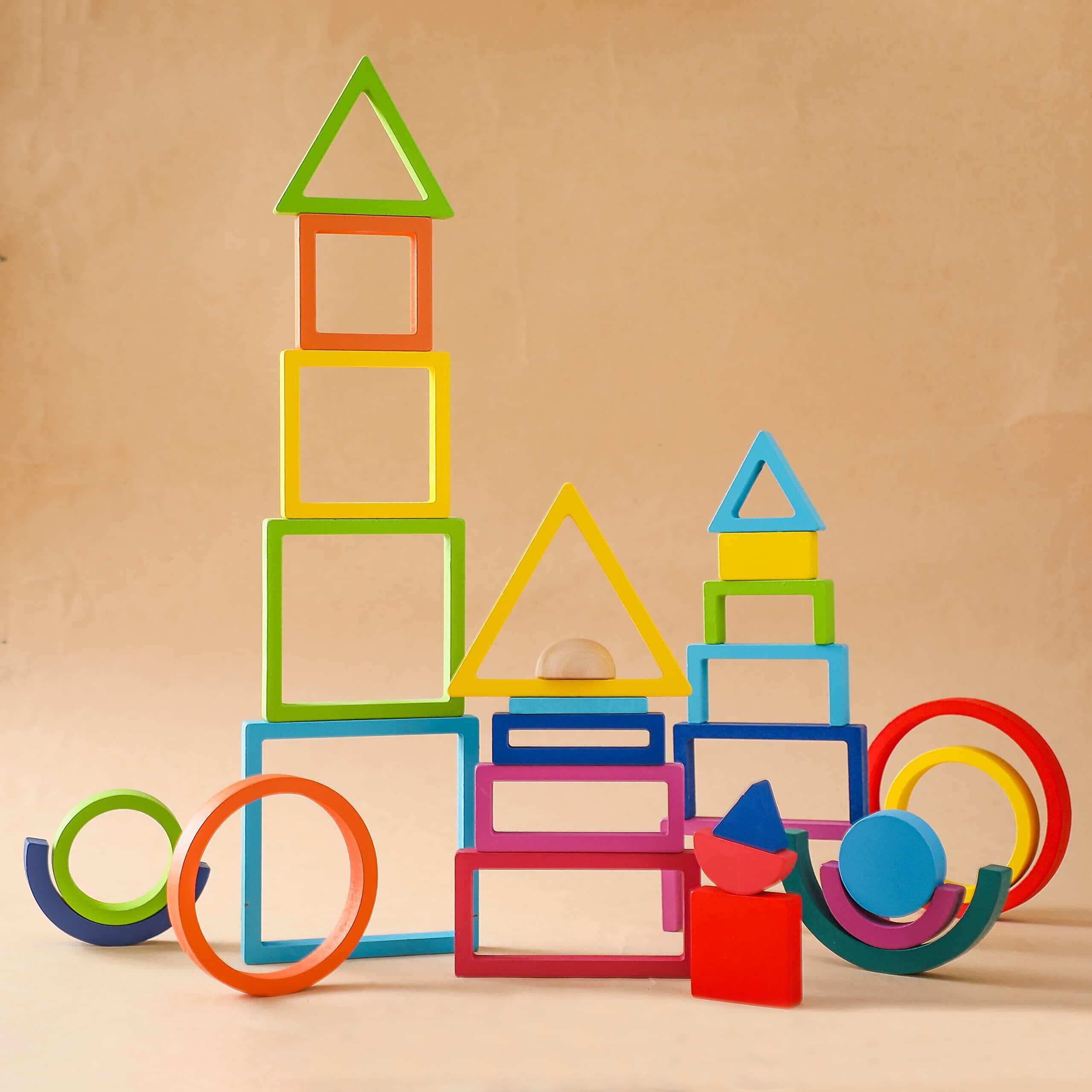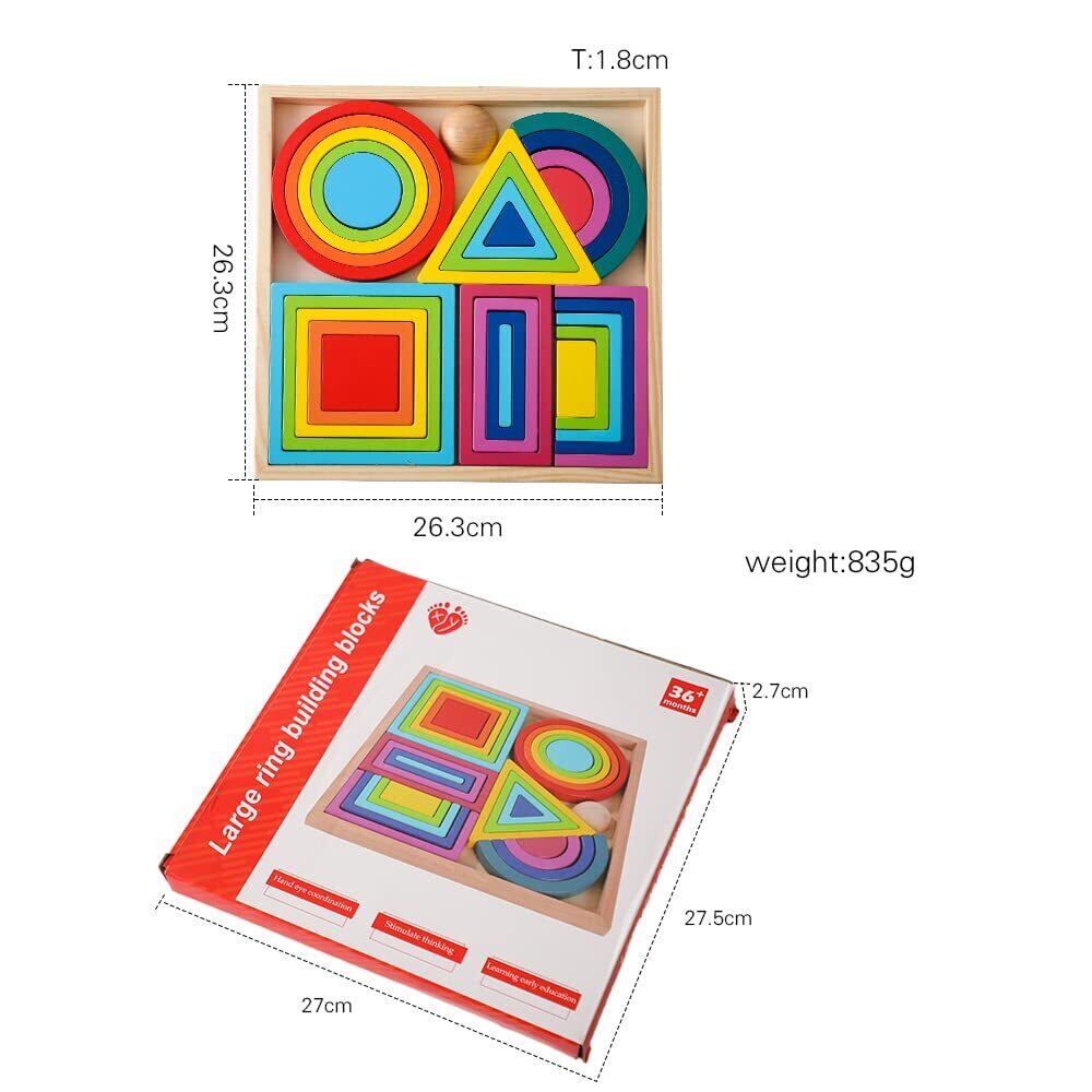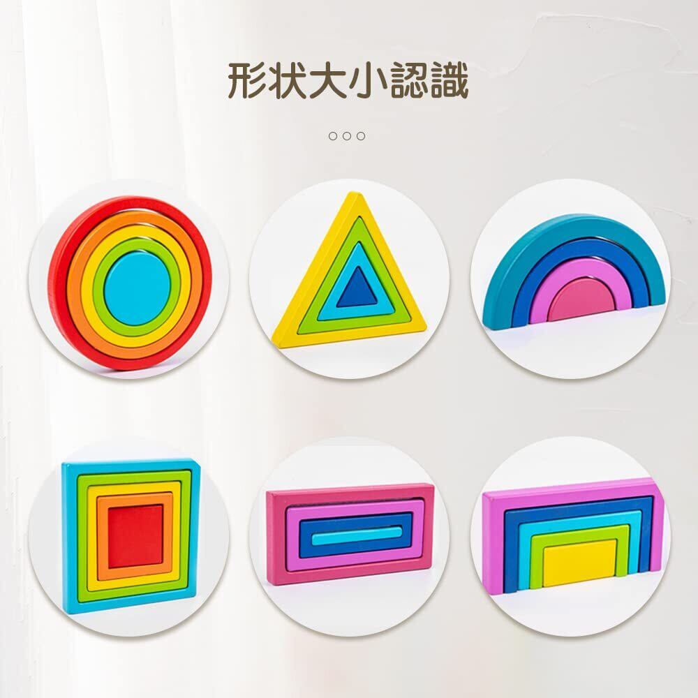 Promise Babe レインボー 虹色トンネル 木のおもちゃ 積み木 知育玩具 円形 三角形 正方形 長方形 アーチ 木製 ベビースタッキング パズル インテリア 知育玩具 出産祝い 誕生日
