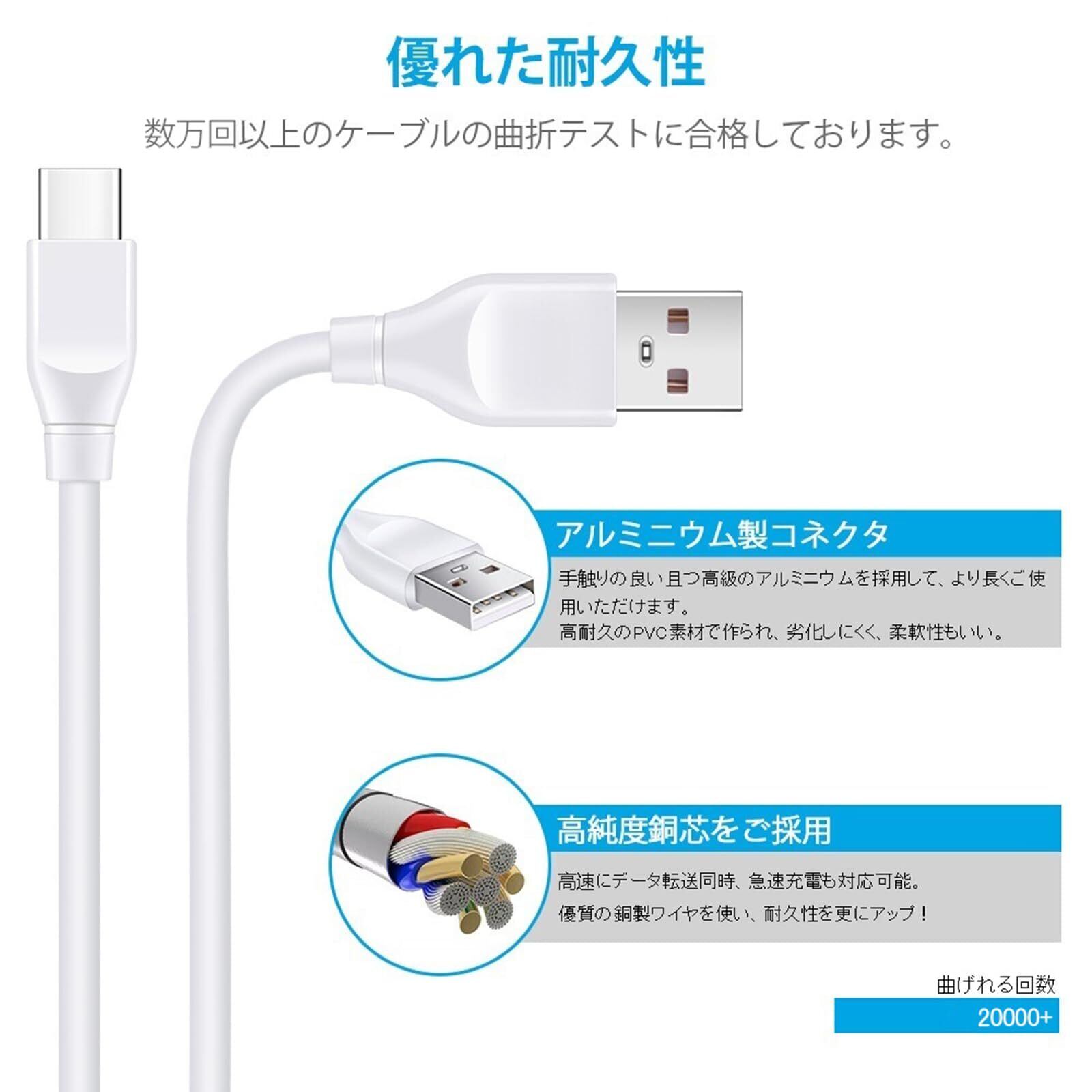 「急速充電・高速データ転送機能揃う買い得なUSB A to USB C ケーブル」:5V/3Aの急速充電と最大480Mbpsの高速同期を実現出来ます。Type Cのプラグ内に56KΩの抵抗を実装するため、デバイスが過電流にならないように保護しています。又、銅製心線を採用し、充電速度がより速くなり、安全性を確保する同時に、充電時間も短縮できます。