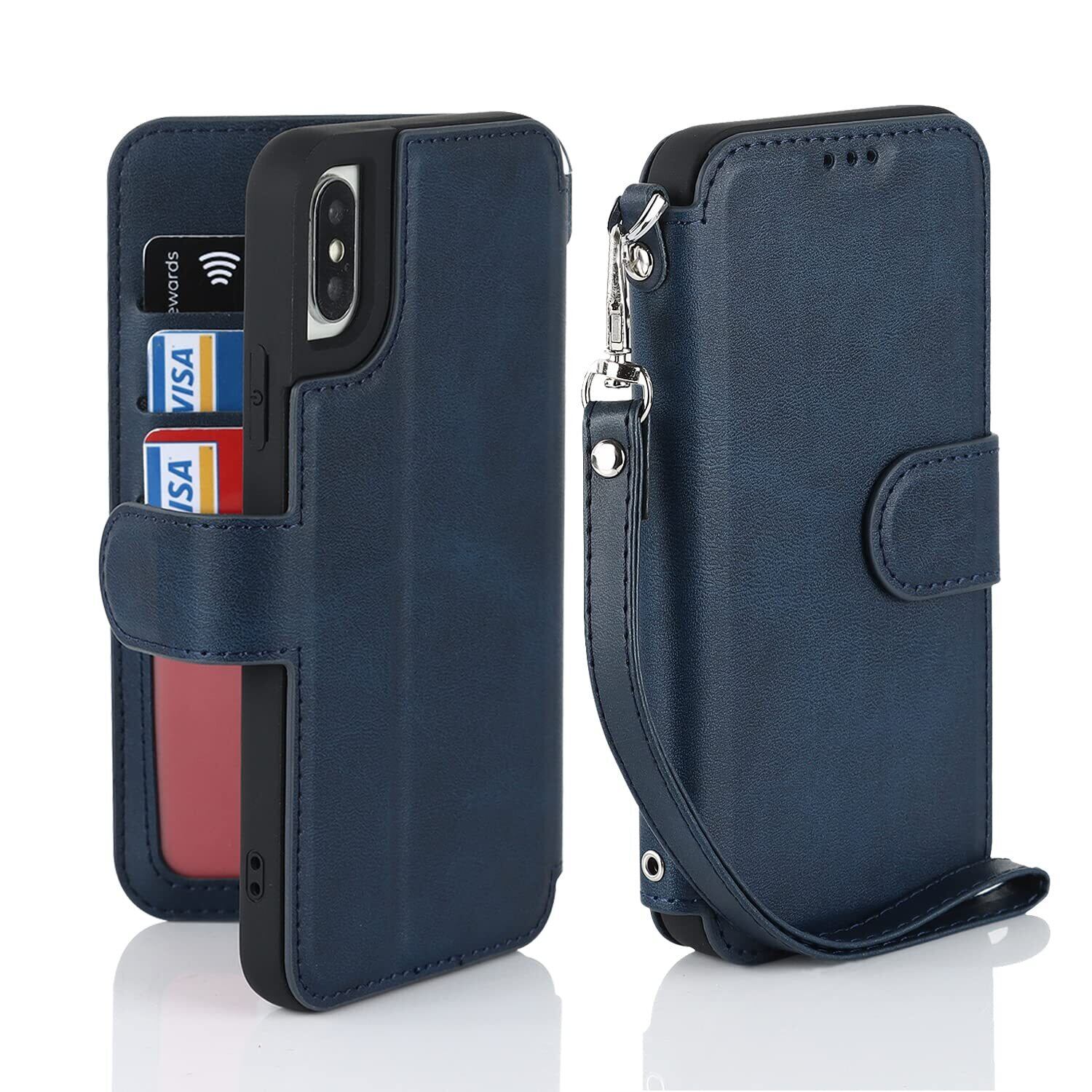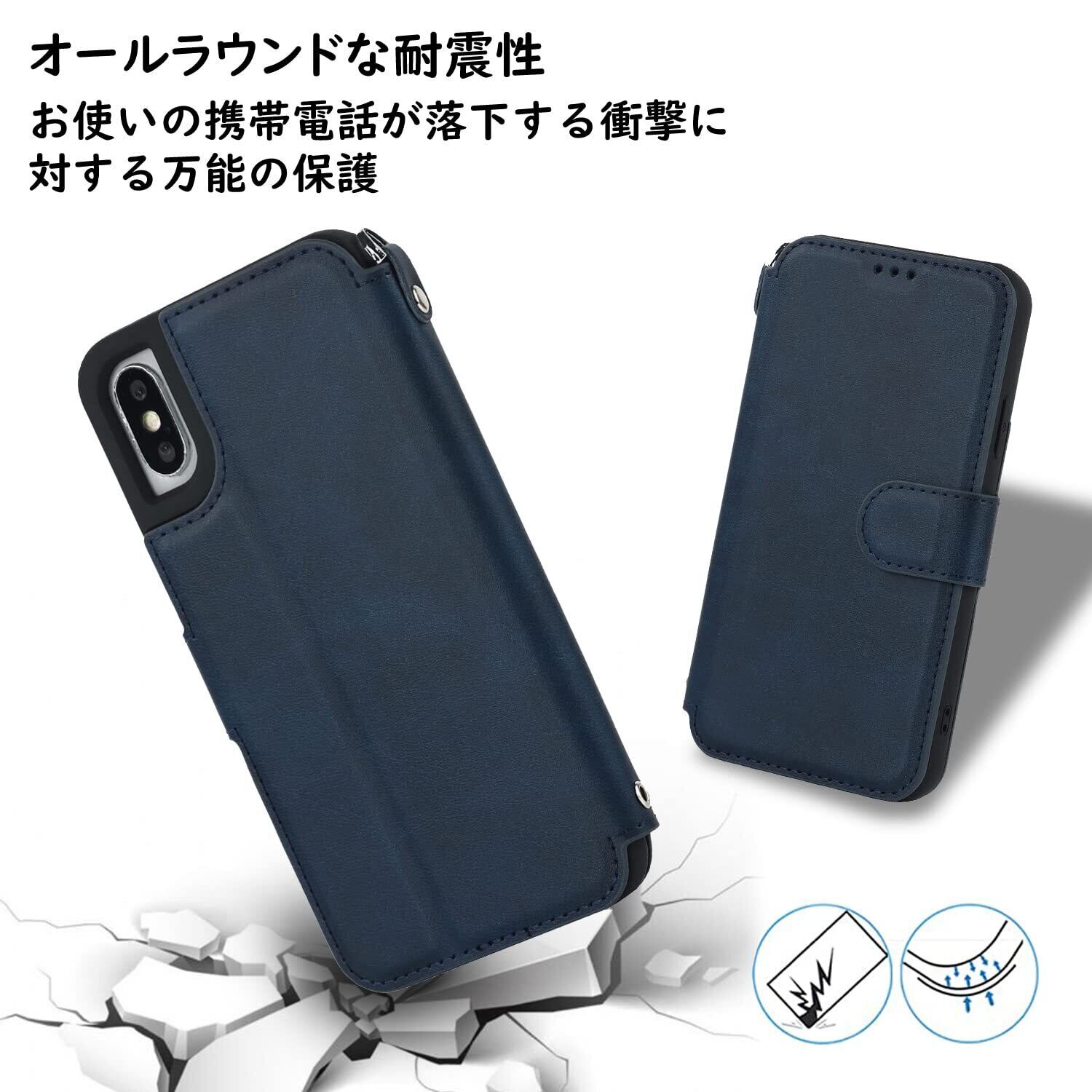 Havaya iPhone XS ケース iphone x ケース iphoneXスマホケース 米軍MIL規格 軽薄 手帳型 ストラップ 耐衝撃 レンズ保護(アイフォンX/あいふぉんXS/いphone10/アイホン10s 5.8インチ対応)-ブルー