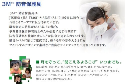 JIS規格に適合する、3Mの防音保護具(イヤーマフ)です。