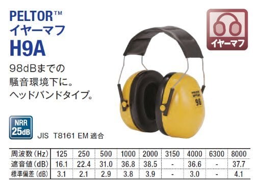 3M 防音 イヤーマフ JIS適合品 PELTOR ヘッドバンド式 H9A