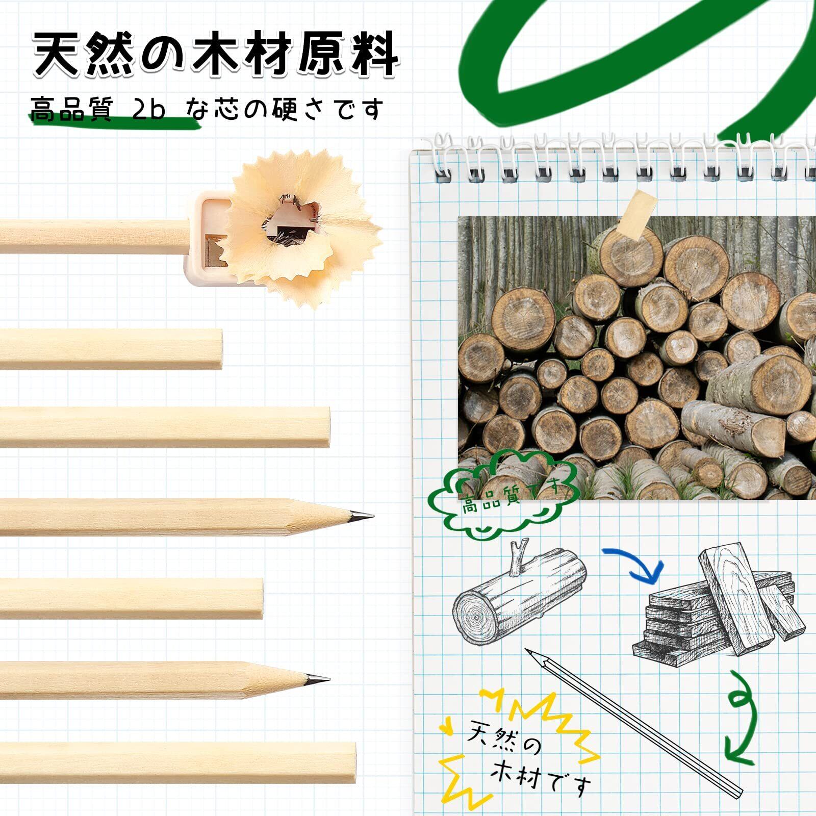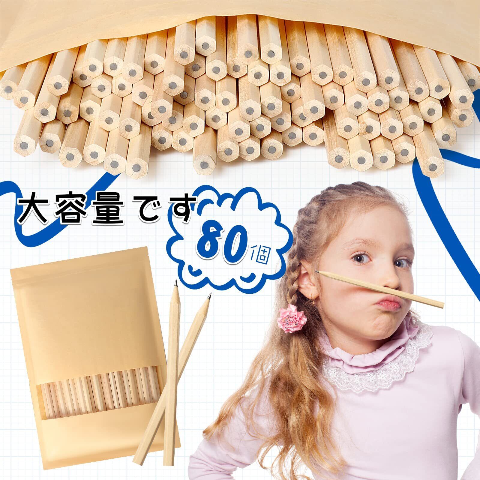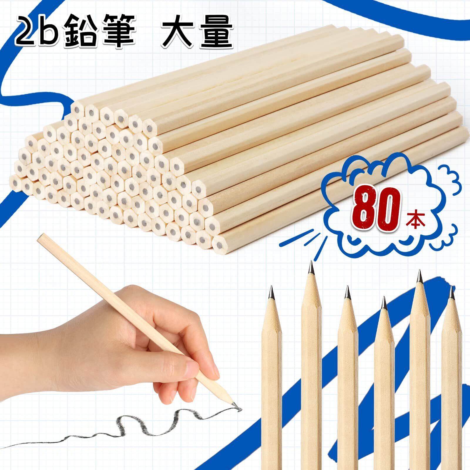 80本 鉛筆 2B えんぴつ かきかた鉛筆 wewink plus 天然木の素材 六角軸 スケッチ鉛筆 入園、入学、メモ、試験用 ペンシル デッサン鉛筆 文房具用品に