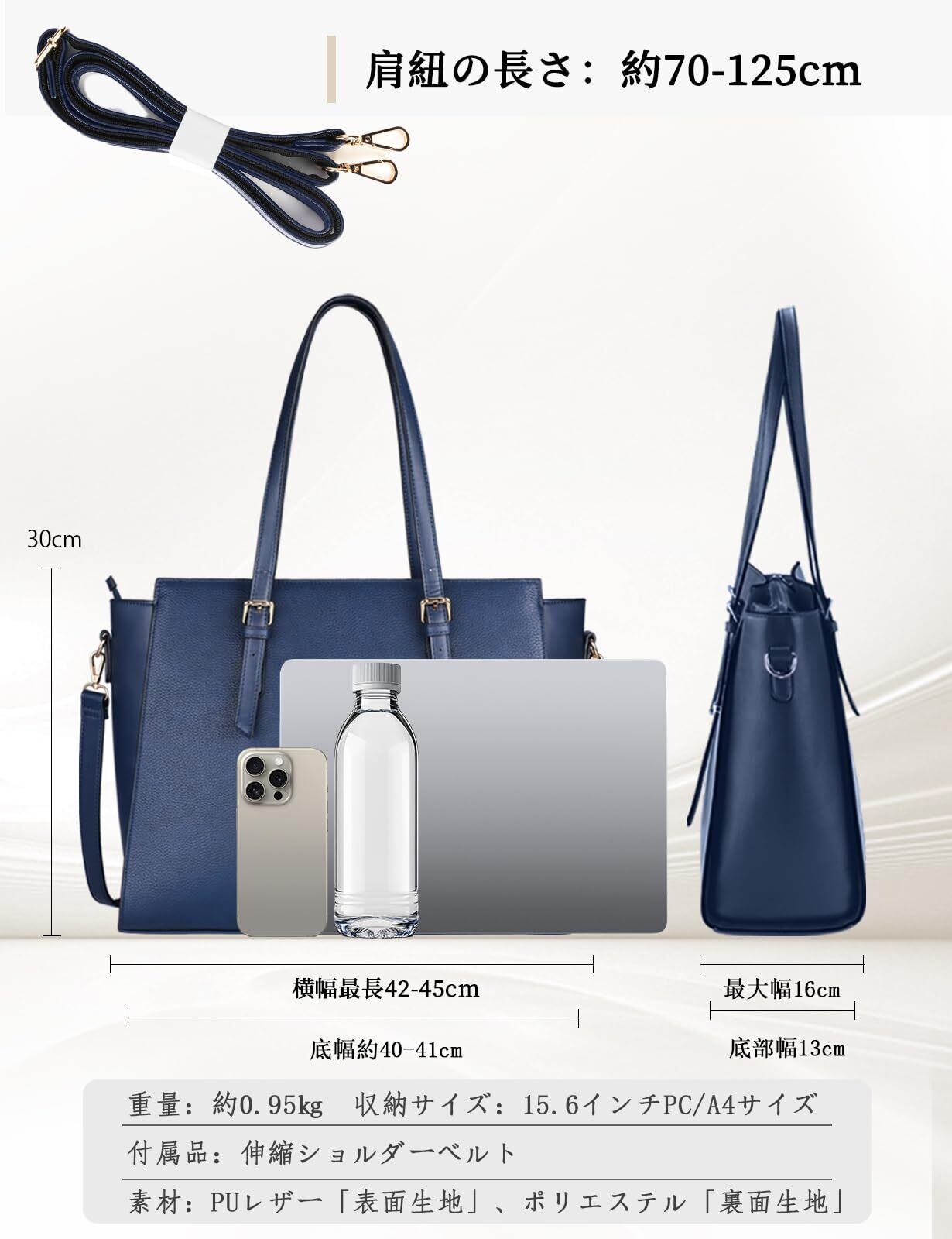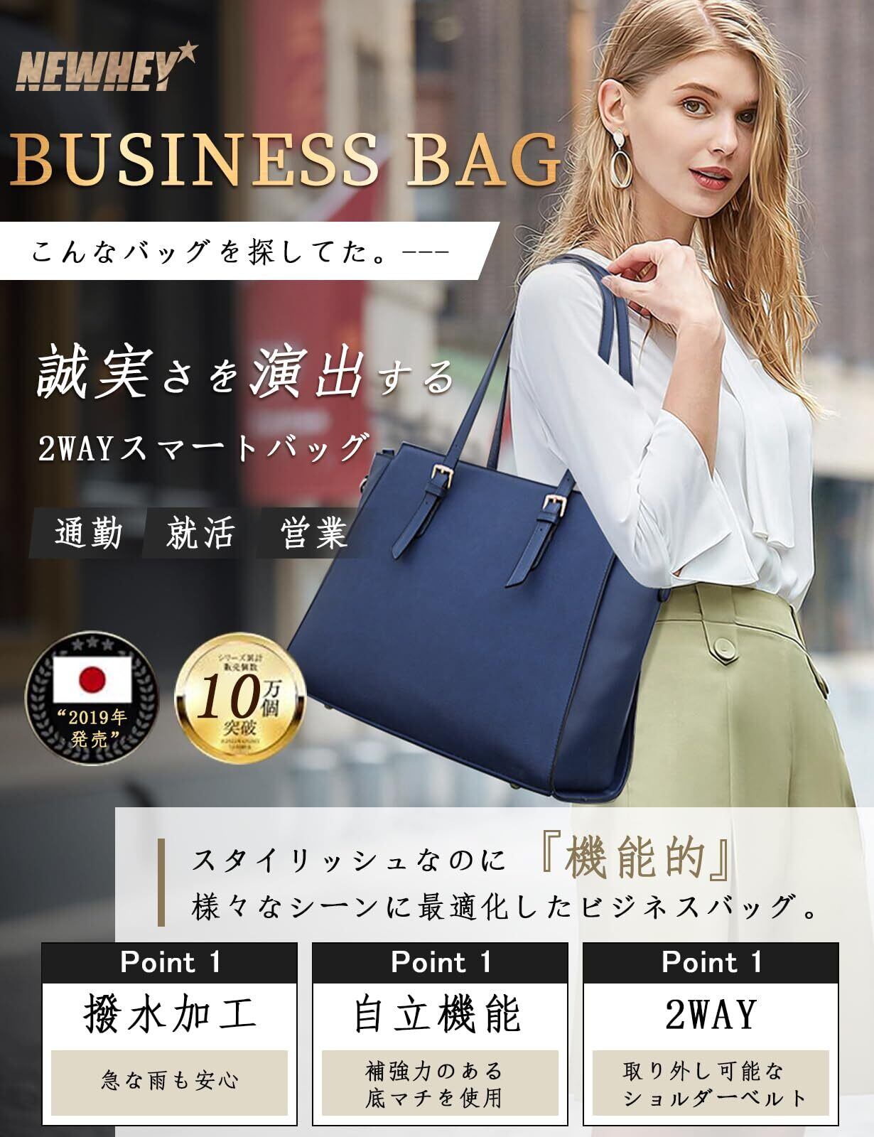 [NEWHEY] ビジネスバッグ レディース 大容量 トートバッグ 15.6インチ PC ハンドバッグ A4 ショルダー 2way 肩掛け 8色 防水 就活 通勤 通学 肩掛け