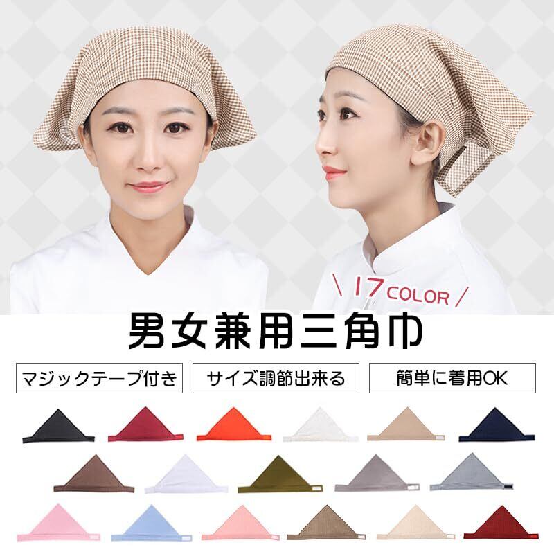 [OTAKUMARKET] 三角巾 シンプル 無地 大人用 男女兼用 カフェ 業務用 料理教室 調理実習 清掃 美容院 マジックテープ付き 簡単に取り付ける