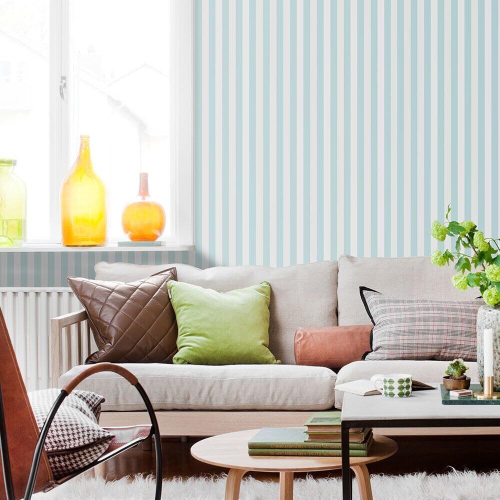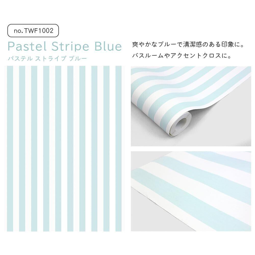 かべがみ革命 壁紙 フリース壁紙 のりなし 貼ってはがせる パステル ストライプ ボーダー日本製 幅46cm×10m巻き (TWF1002/BLUE)