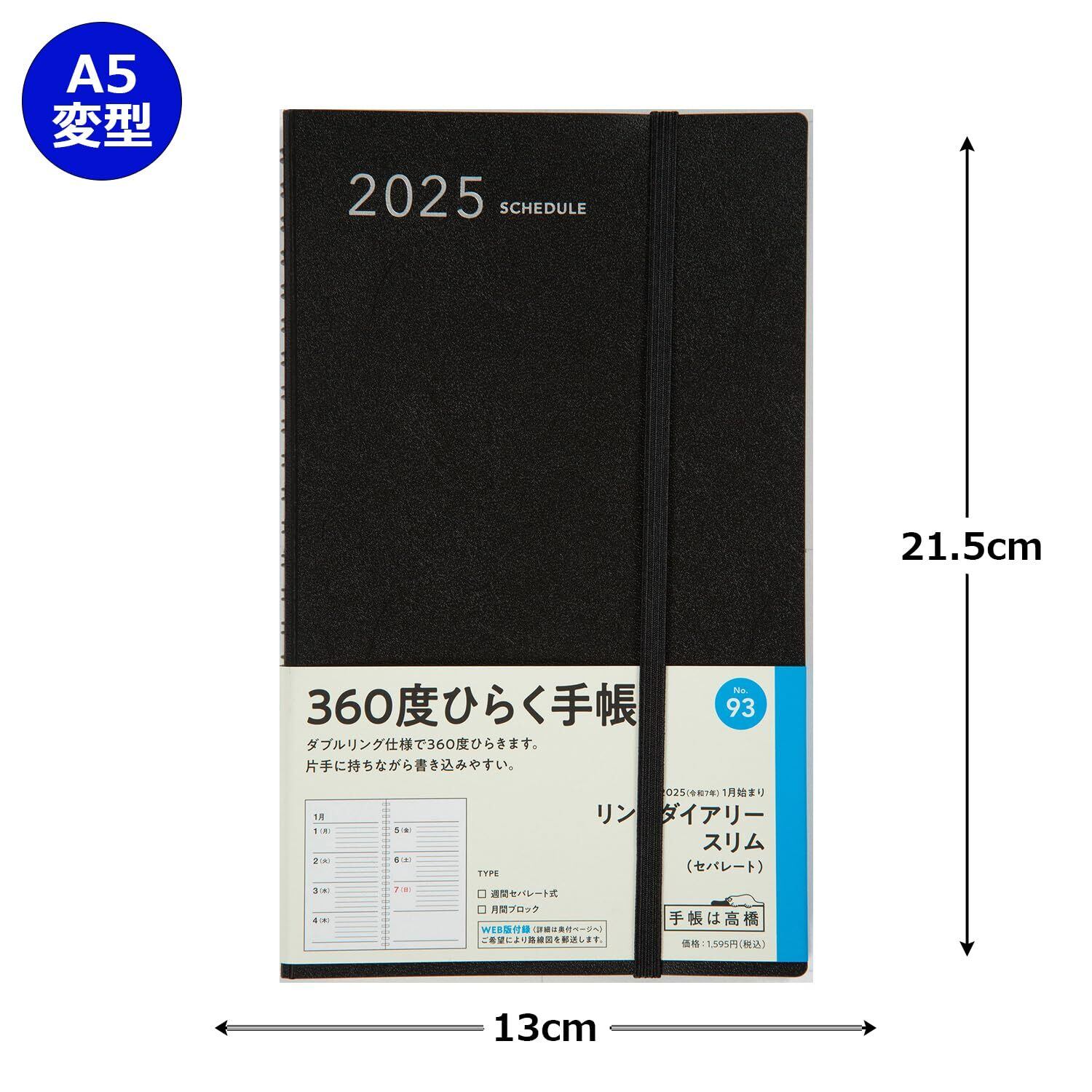 高橋 手帳 2025年 A5変型 ウィークリー リングダイアリー スリム セパレート 黒 No.93 (2024年 12月始まり)