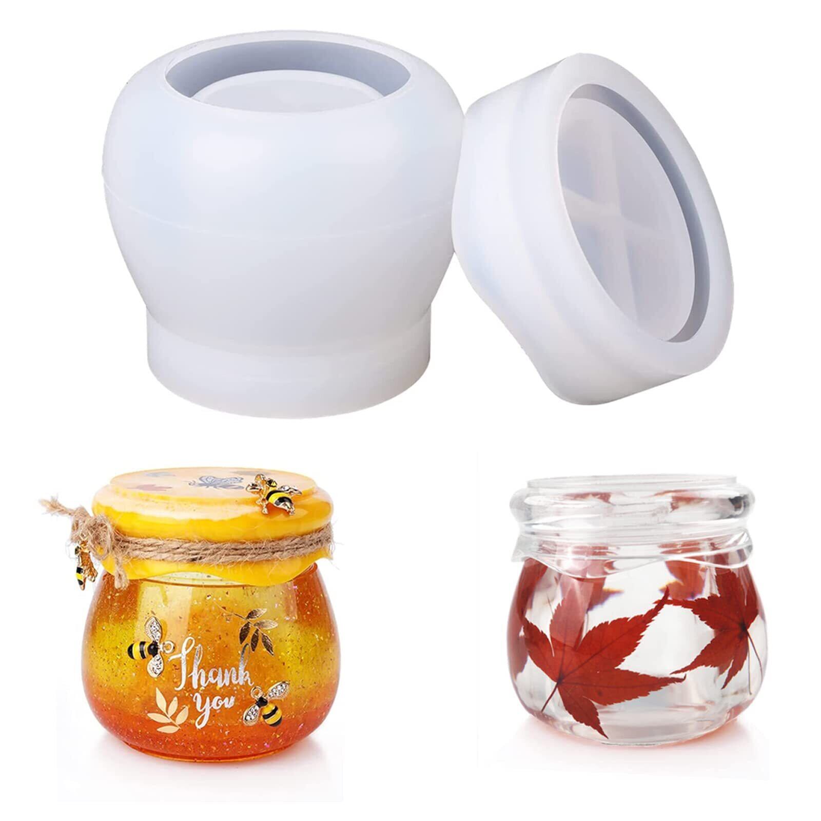 ジャム瓶の形状の小物入れが作れるシリコンモールドです。シール、ドライフラワー、ラメなどデコ素材を封入すると、可愛いデザインの小物入れがお作りいただけます。