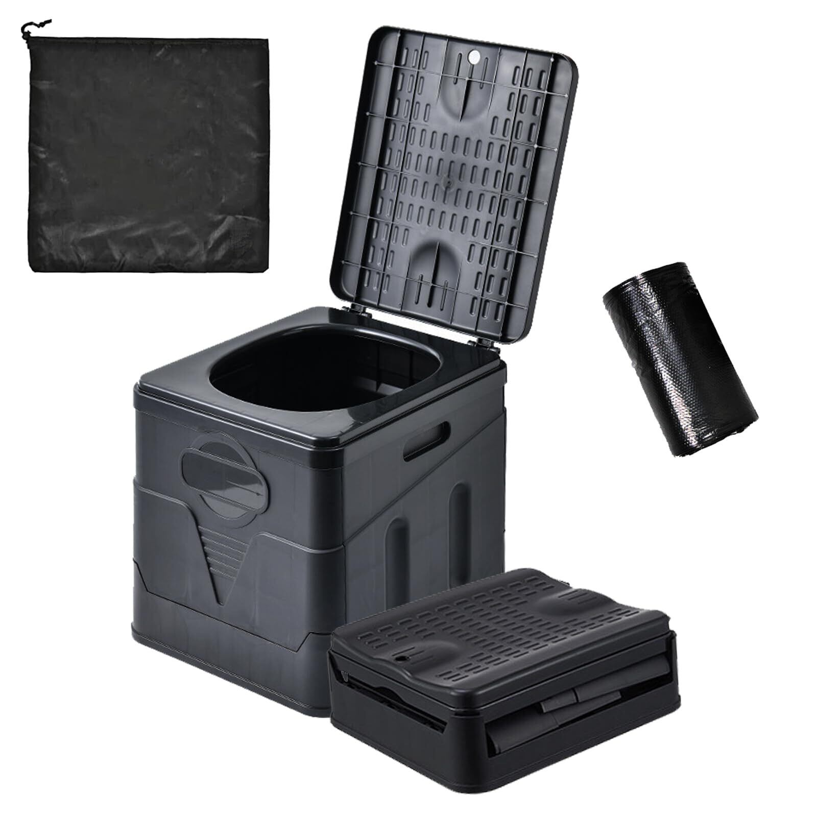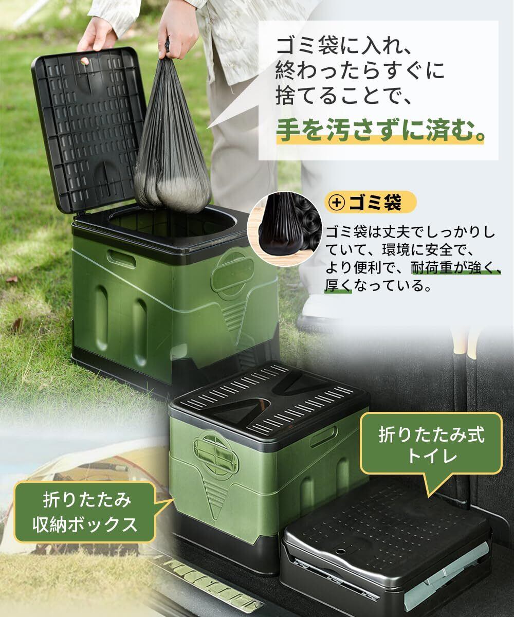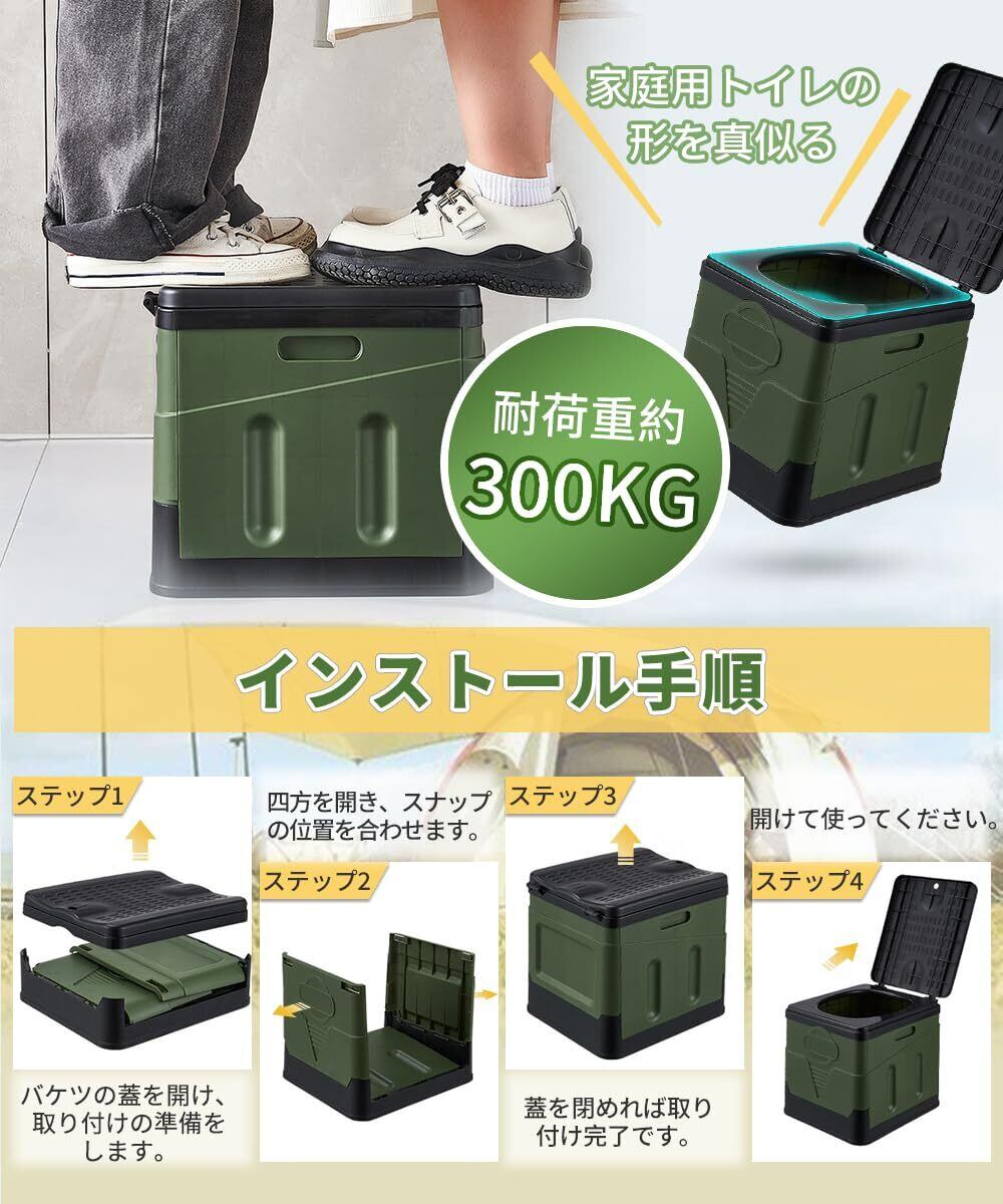 【多機能な設計】緊急時の簡易トイレだけでなく、この製品は様々な用途に使えます。スツールやゴミ箱など、キッチン、玄関、アウトドアなどの場所で日常的に使用することができます。この多機能な設計により、このトイレは非常に実用的な家庭用品となっています。
