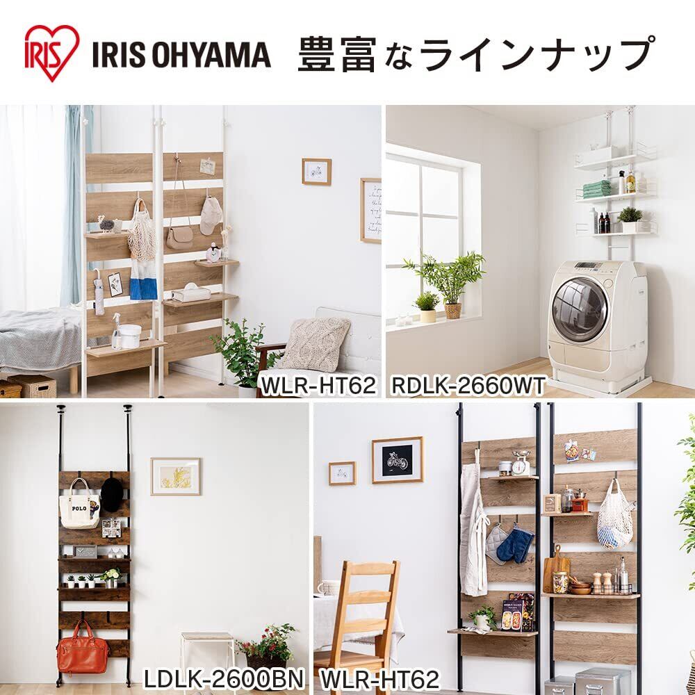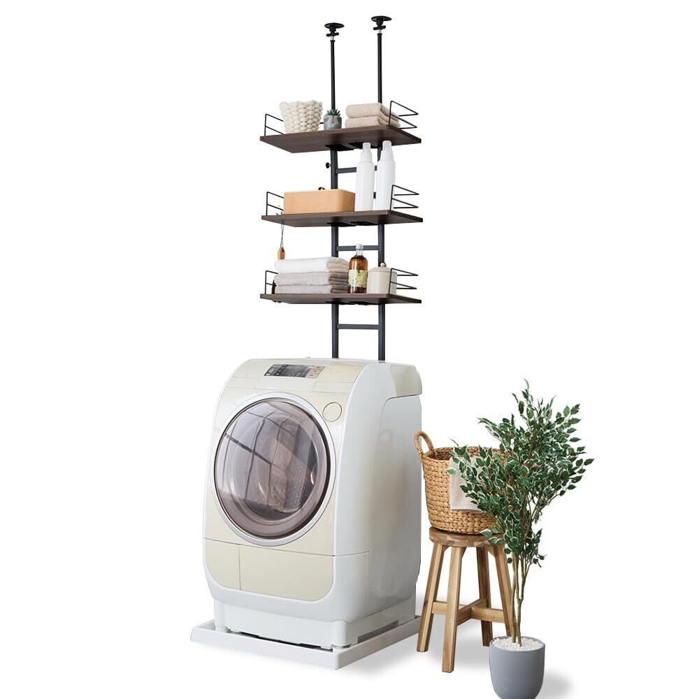 アイリスプラザ ランドリーラック 洗濯機ラック 突っ張り式 突っ張りランドリー 幅60cm 8段階 高さ調節 RDLK-2660WN ウォールナット×ブラック