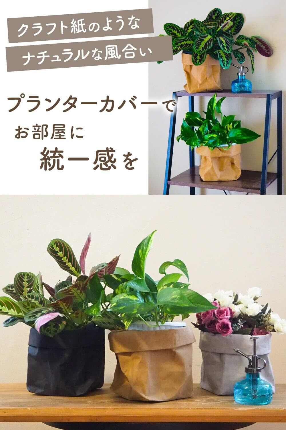 SR-tools 鉢カバー 2枚セット プランターカバー 北欧 観葉植物 屋内 室内 5号 6号鉢クラフト紙 プラントカバー 植木鉢 X L グレー 灰色
