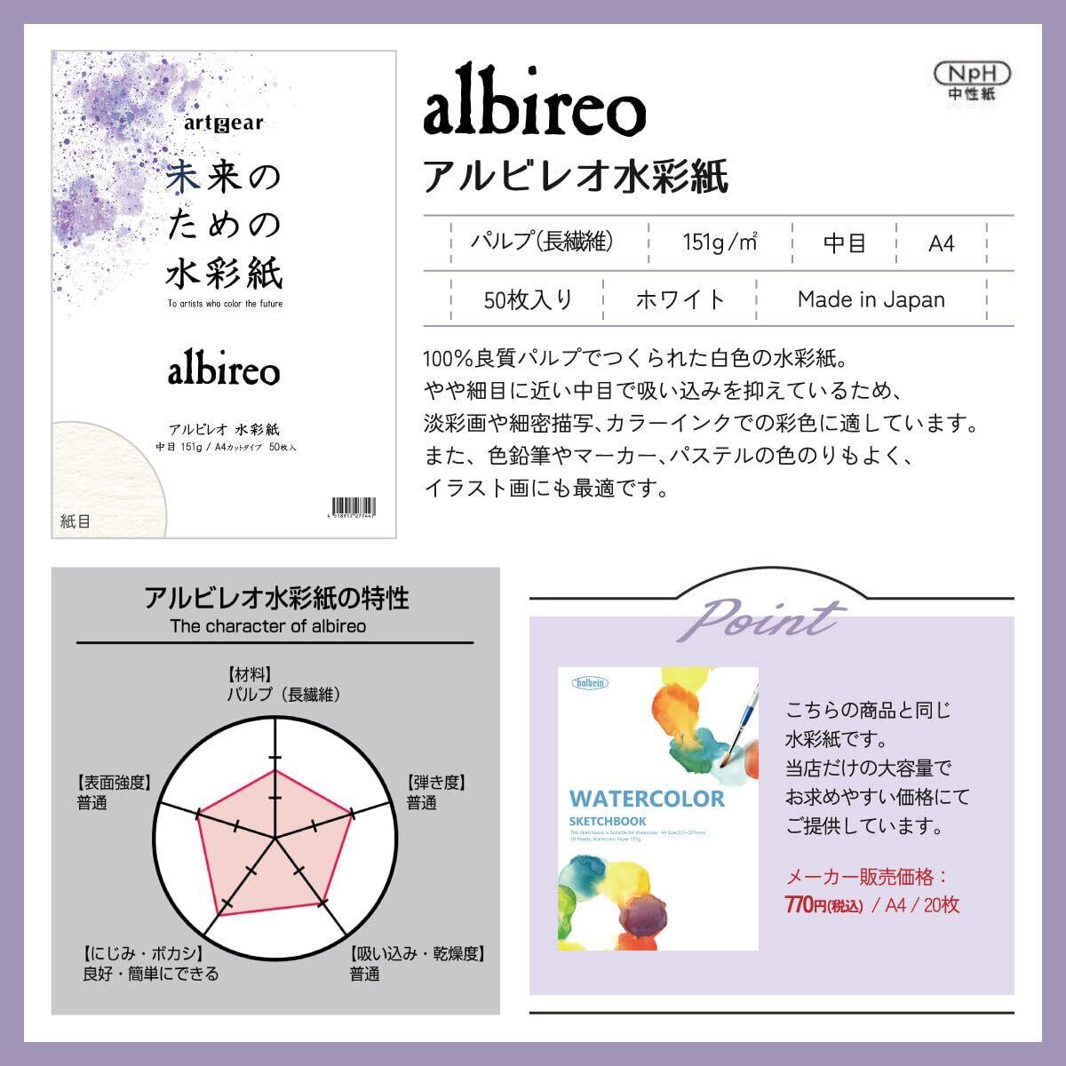 artgear 未来のための水彩紙 A4 50枚 アルビレオ水彩紙 151g 中目 (agp006)