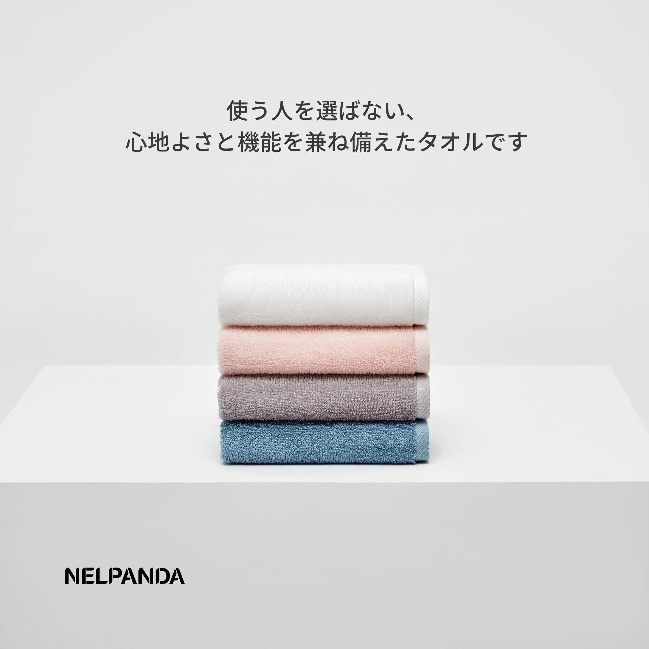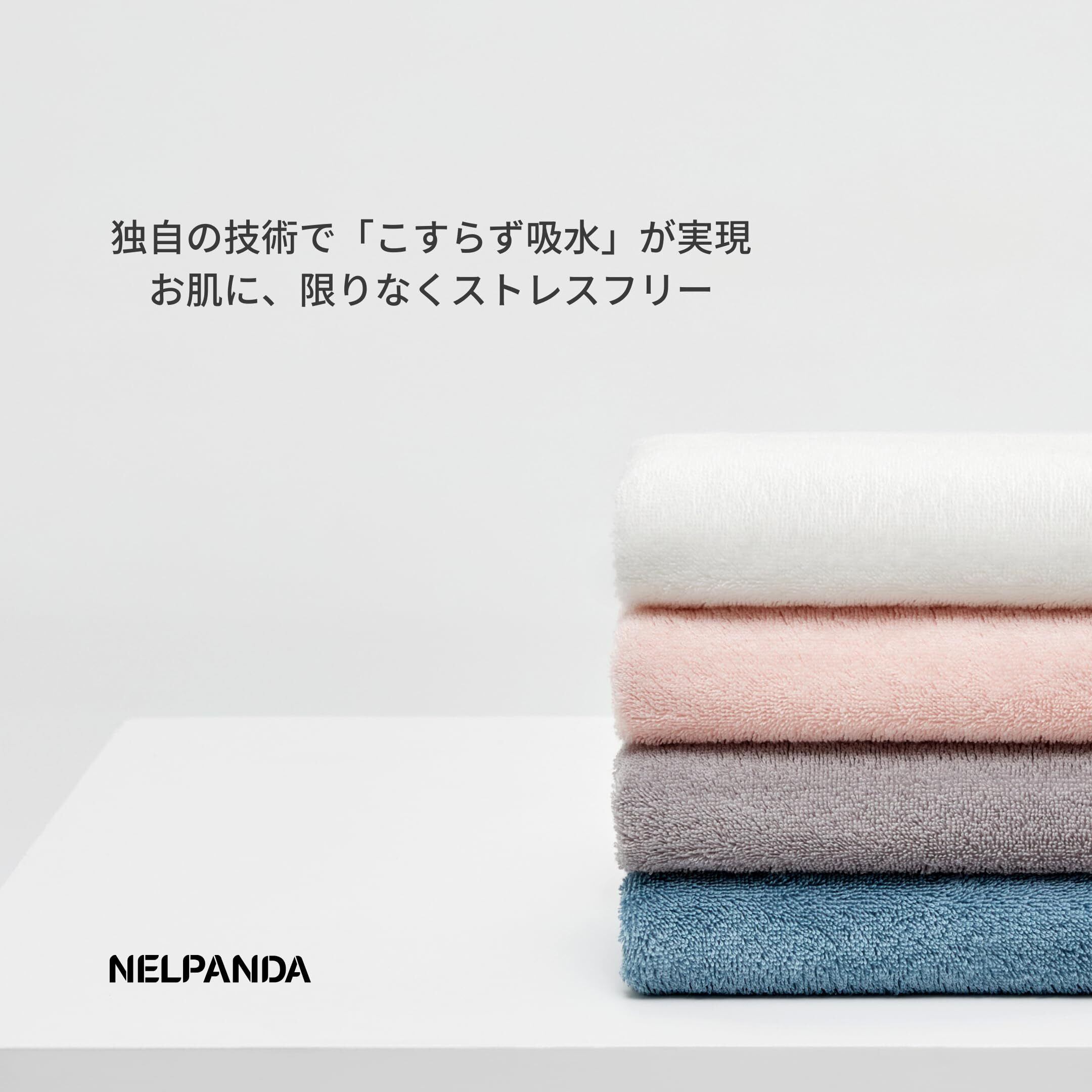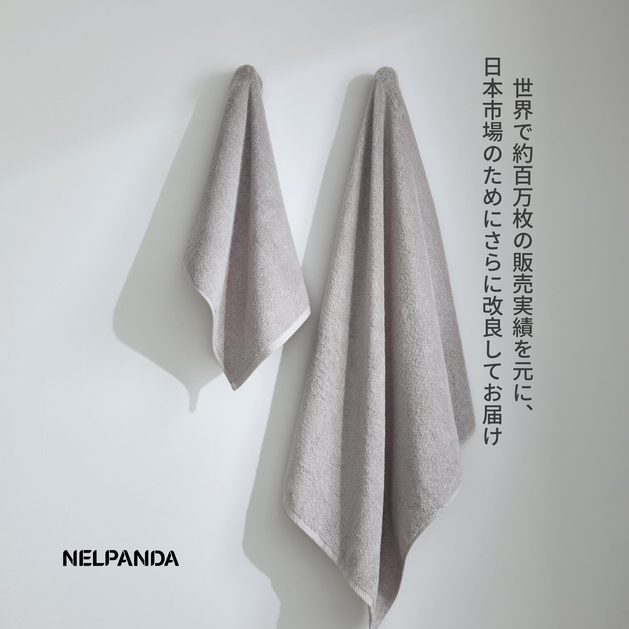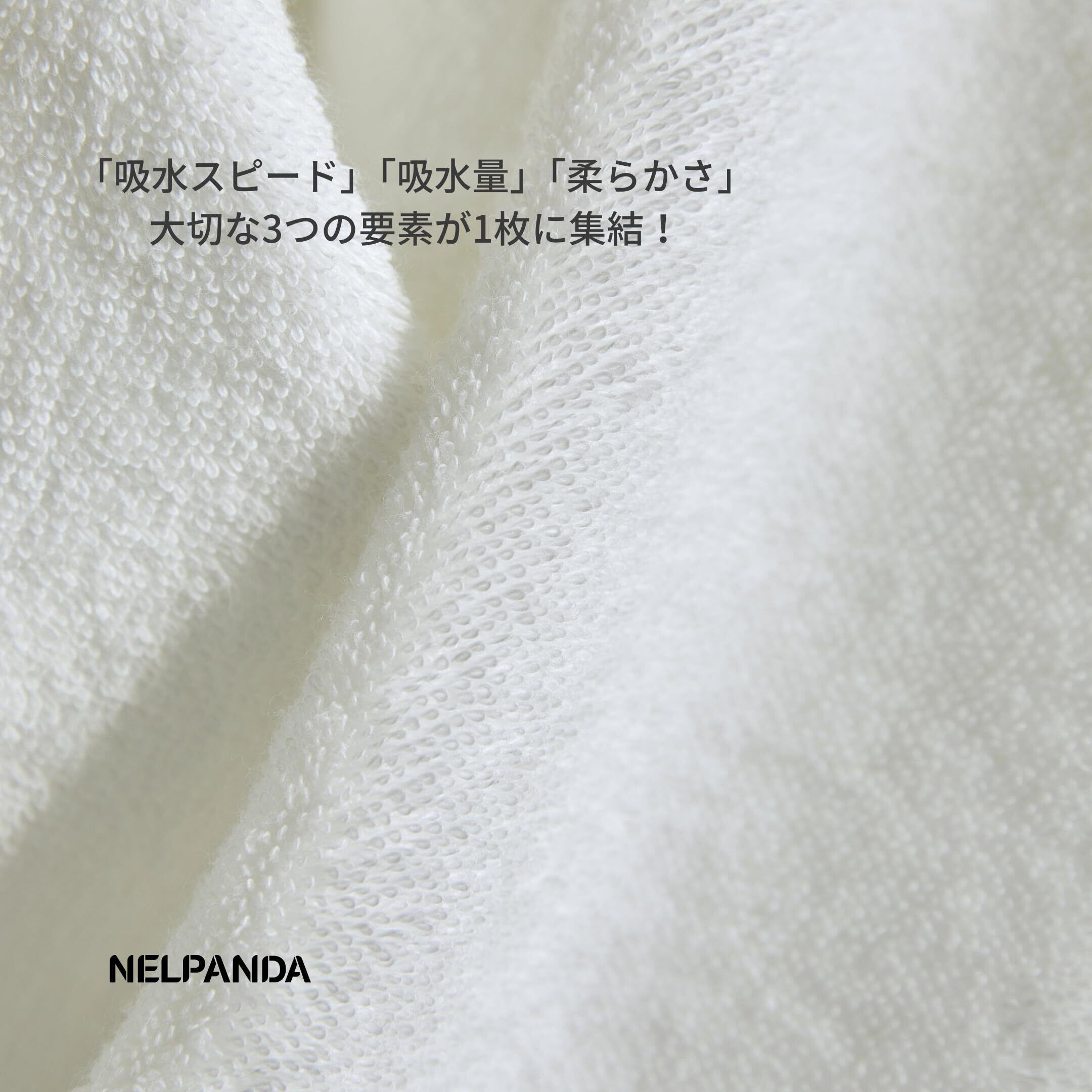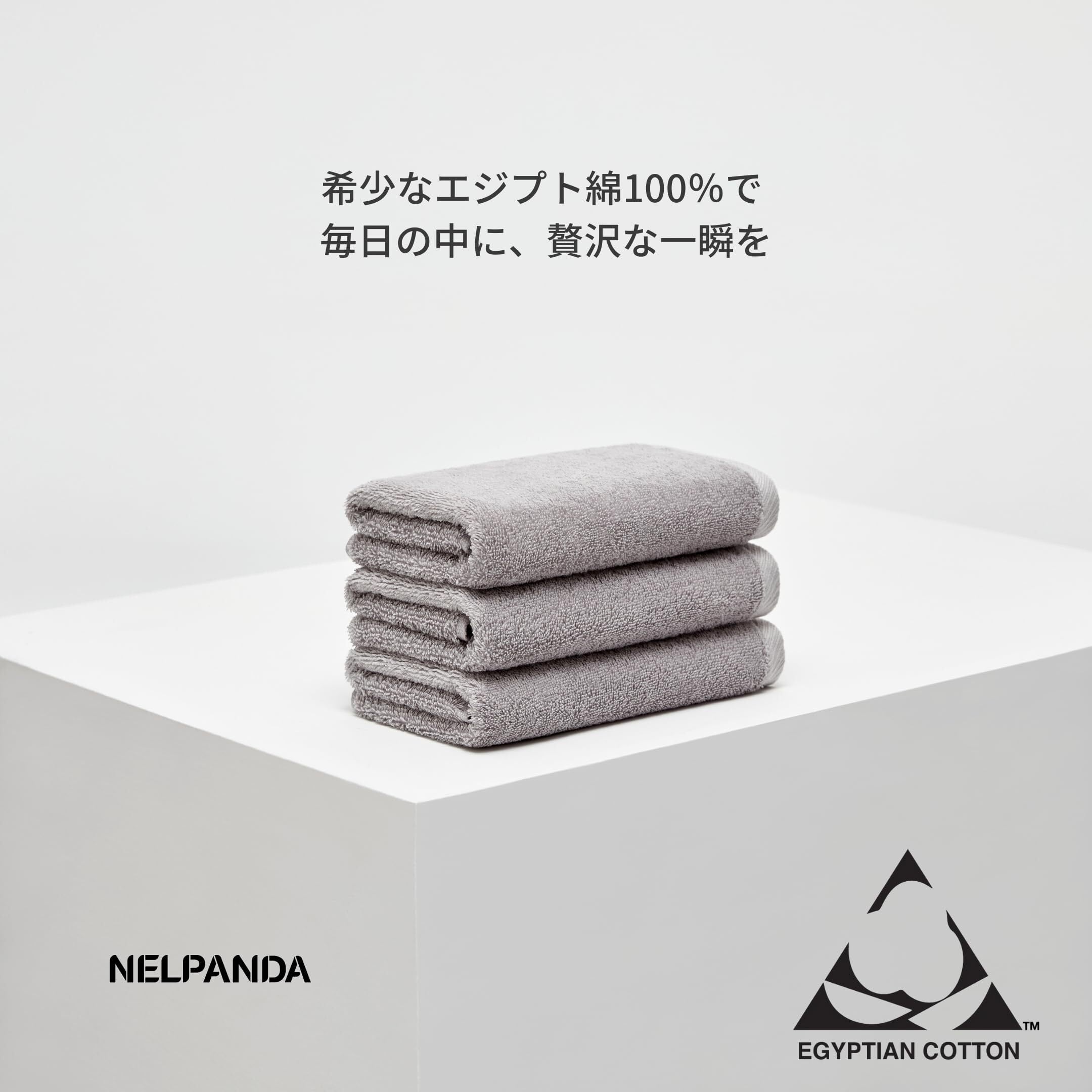 【毎日の中に、贅沢な一瞬を】NELPANDAのタオルは、選りすぐりのコットンを老舗工場と共同開発した独自の甘撚り技術で丁寧に織り上げ、優しくしなやかな肌触りを実現しています。(素材:手摘エジプト綿100%甘撚糸 /バスタオル:約337.5g 約60×125cm / フェイスタオル : 約126g 約35×80cm )