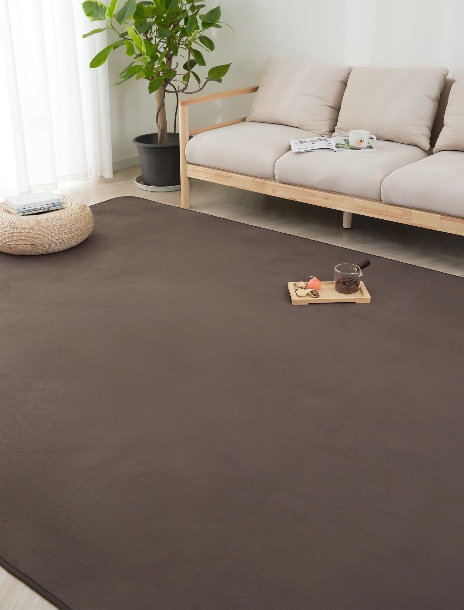 【人気商品】HARUMIN カーペット ラグ ラグマット 洗える 135×185cm 約1.5畳 絨毯 北欧 おしゃれ 抗菌 防臭 滑り止め オールシーズン 床暖房 ホットカーペット対応 床保護マット ブラウン | gsmshop
