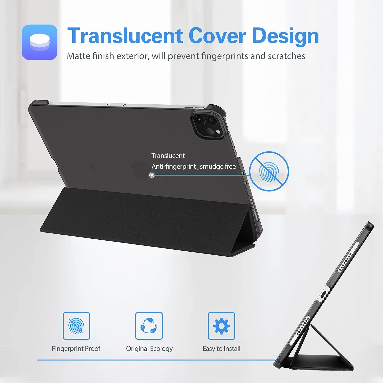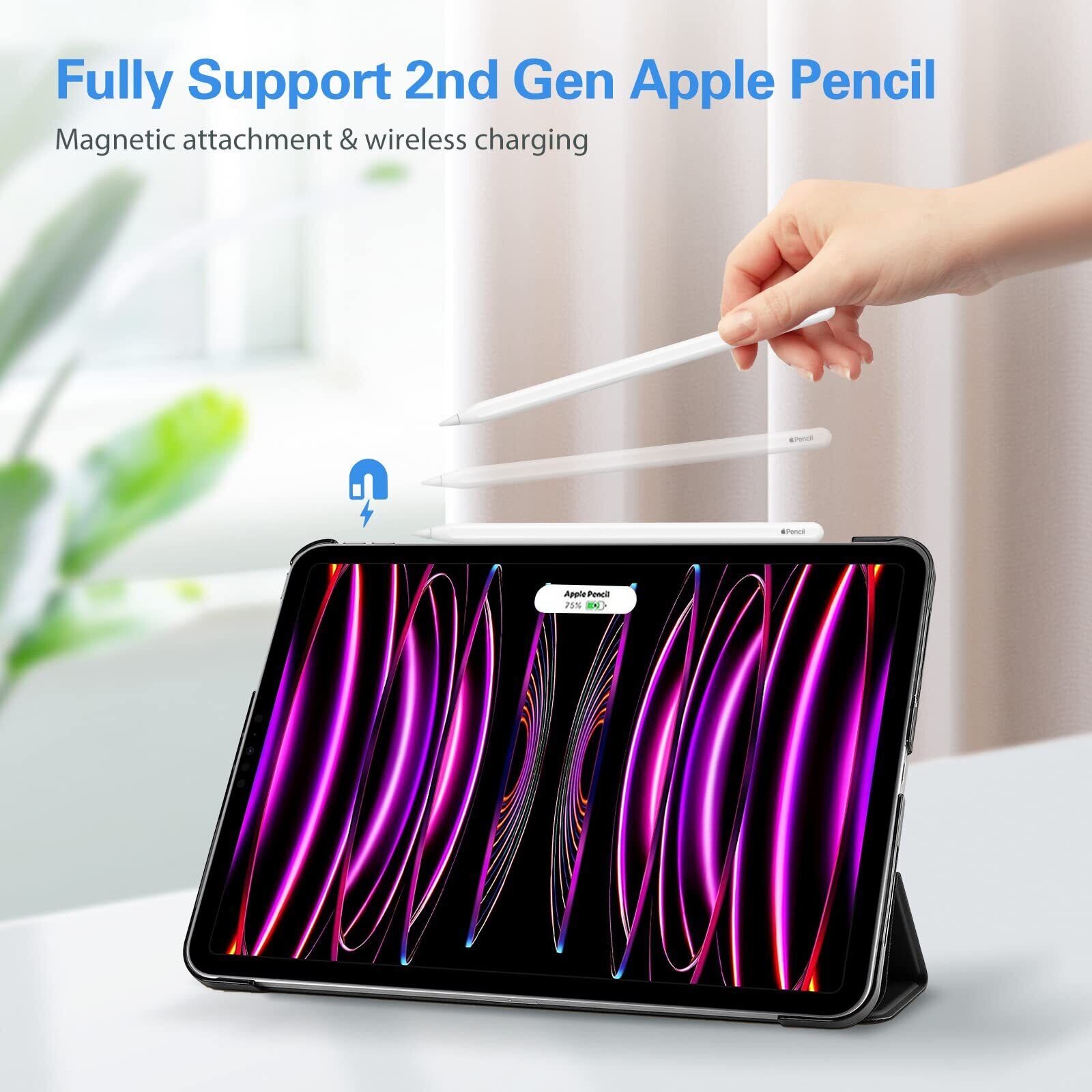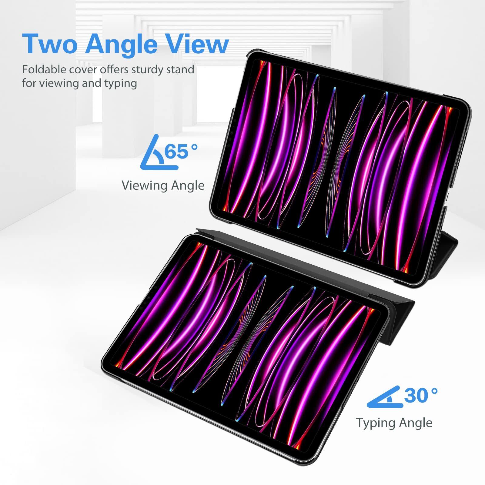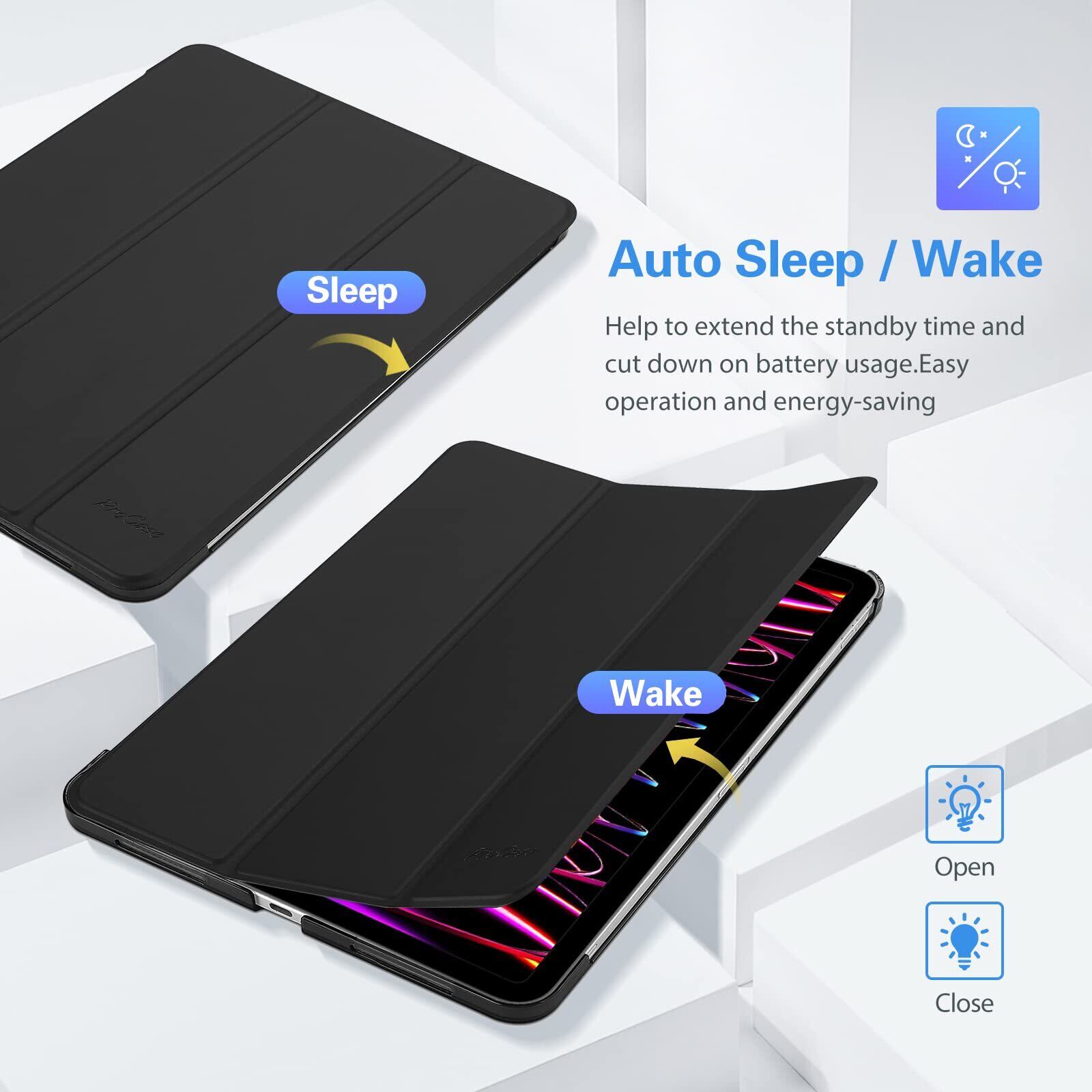 ProCase iPad Pro 12.9 ケース 第6/5/4/3世代に適用(2022 2021 2020 2018) スリム 三つ折り スタンド スマートカバー Pencilのペアリングと充電に対応 - ブラック