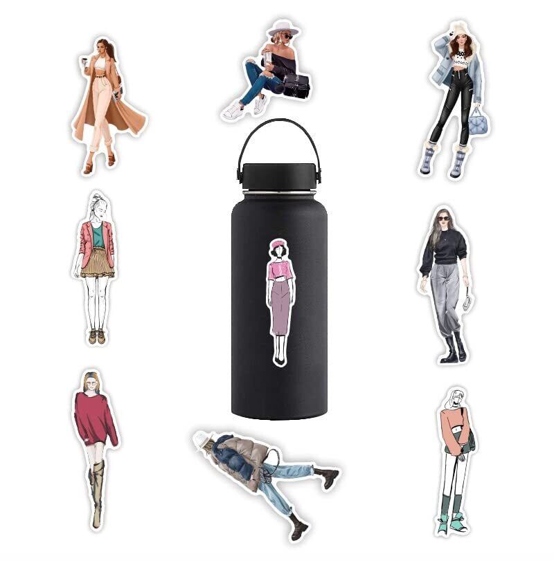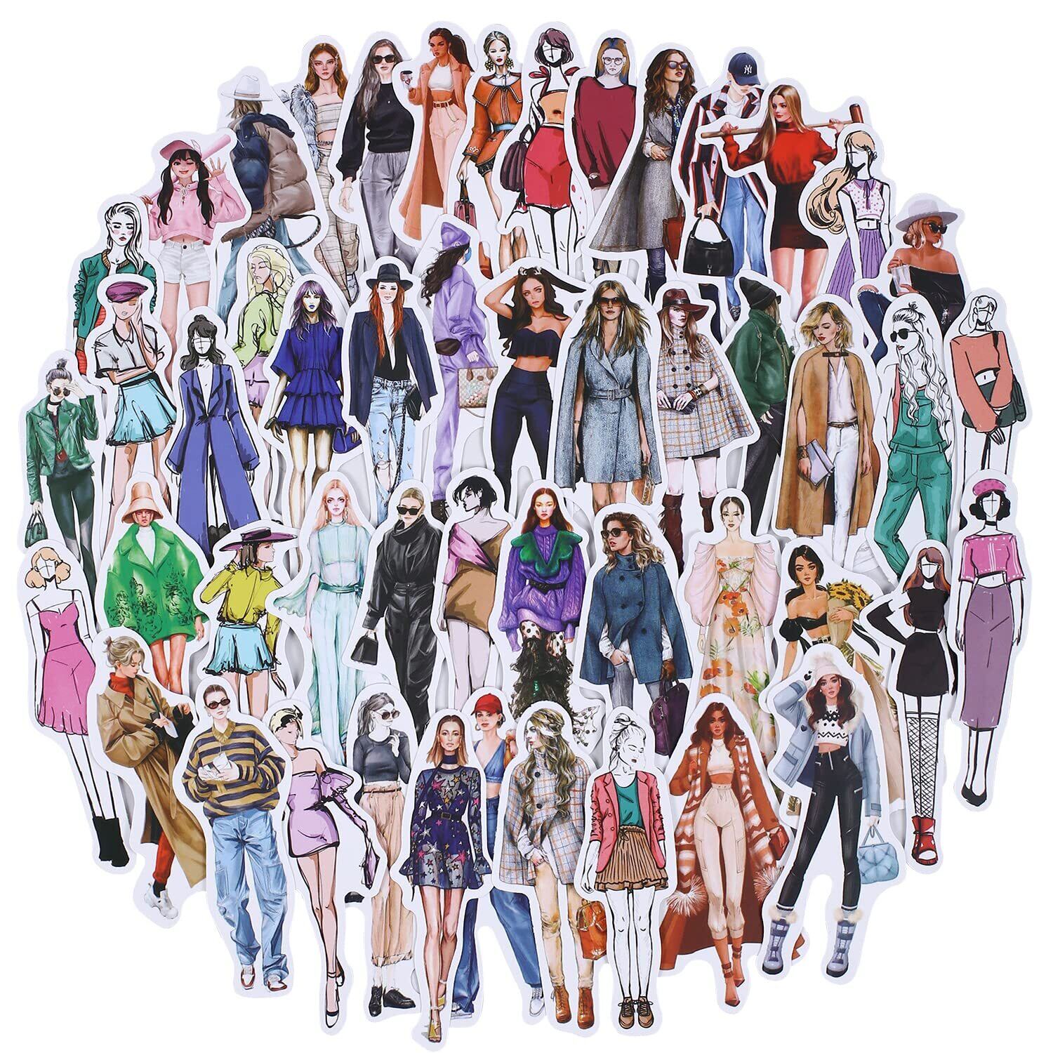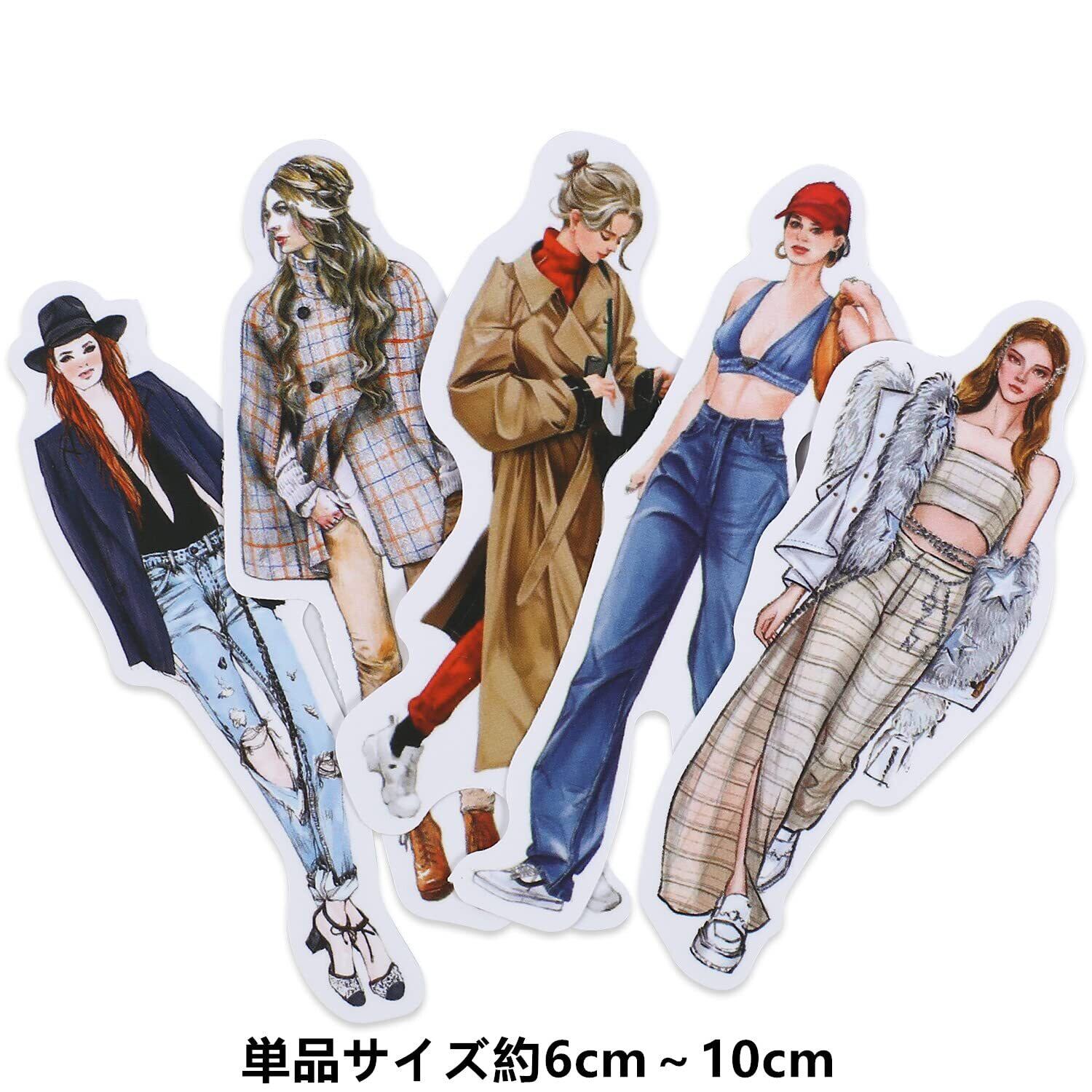 【コラージュ シール 女の子 - 大量なセット 】 約100枚入りかわいい女の子のステッカーセット。様々なファッションでおしゃれなステッカーです。