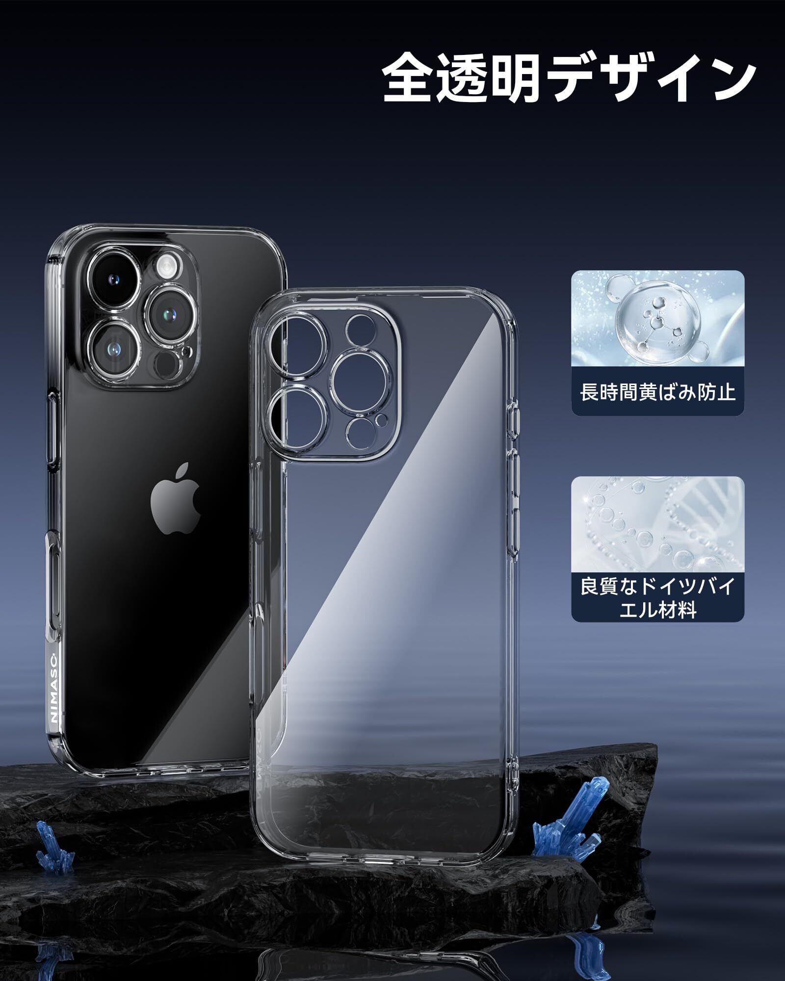 NIMASO iPhone16ProMax 用 クリア ケース 透明 ソフト スマホケース TPU素材 薄型 カバー 米軍MIL規格 衝撃吸収 カメラ レンズ保護 黄ばみにくい いphone16ProMax ケース ワイヤレス充電対応(清水シリーズ)