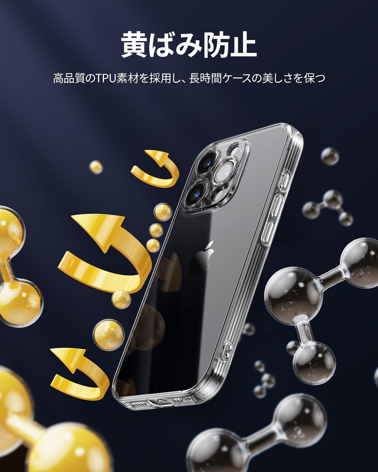【高透明度・黄変防止】高級熱可塑性ポリウレタン(TPU)素材を採用する、従来のケースと比べてより透き通った透明感を保つことができ、長期間経ってもケースが黄変しにくく、 iPhone16ProMax本来の美しさを楽しめます。