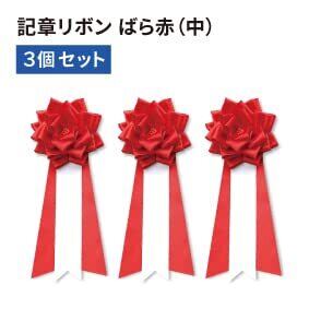 記章 リボン ばら [中サイズ/3個セット] 式典 胸章 パーティ イベント 学校 会議 徽章 表彰 (赤)