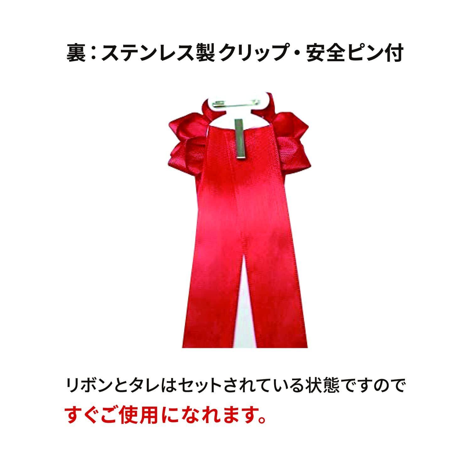 各種式典やイベント等の来賓、審査員などに付けていただく胸章です。 サイズは小・中・大・特大。色は赤・白・ピンク・黄色が一般的です。 衣服を傷つけない様に原材料を吟味して、着用してて気持ち良い様に美しいリボン徽章を御提供致します。実用新案2082113を取得しております。 裏の差込部分がプラスチックのクリップを採用してるリボン徽章メーカーが多いようです。しかし、万が一割れたりした場合に手や衣服を傷つけたりしては大変です。当社は面取り加工を施したステンレス製を採用しました。これで割れたり傷つけたりする心配がございません。 金具や安全ピンは軟質ビニールの土台から出ております。プラスチックのように固くないので衣服や指先を傷つける事がありません。ソフトな手触りです。 安全ピンも標準でついております。ポケットなど、差し込む場所がない場合は安全ピンをご利用ください。
