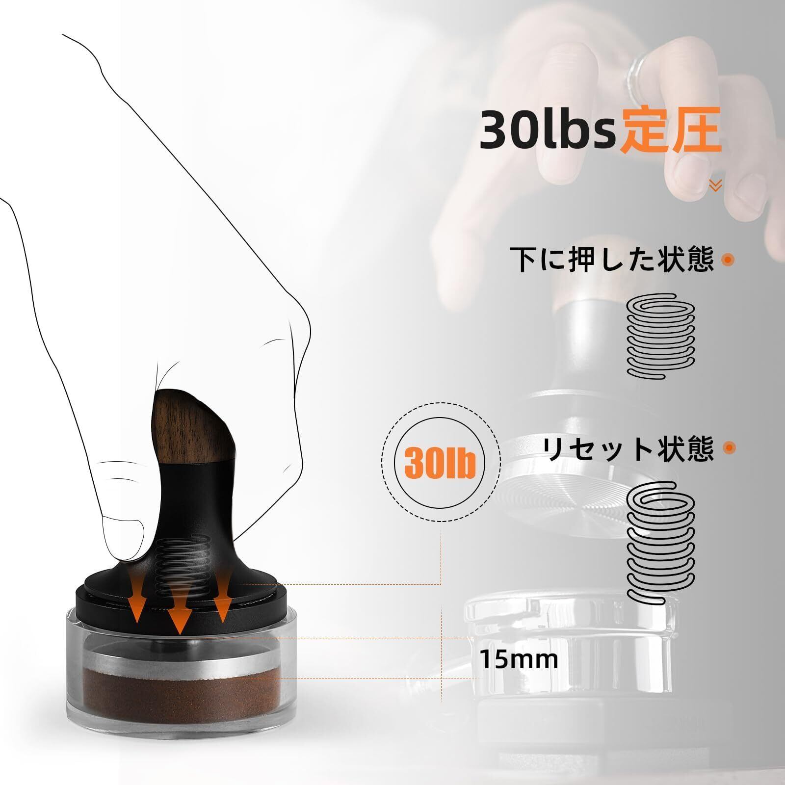 3つのバネを持つタンパー:MHW-3BOMBERエスプレッソタンパーは、圧力を一致に保つだけでなく、音声でフィードバックする独特なの3つのバネ設計を備えています。