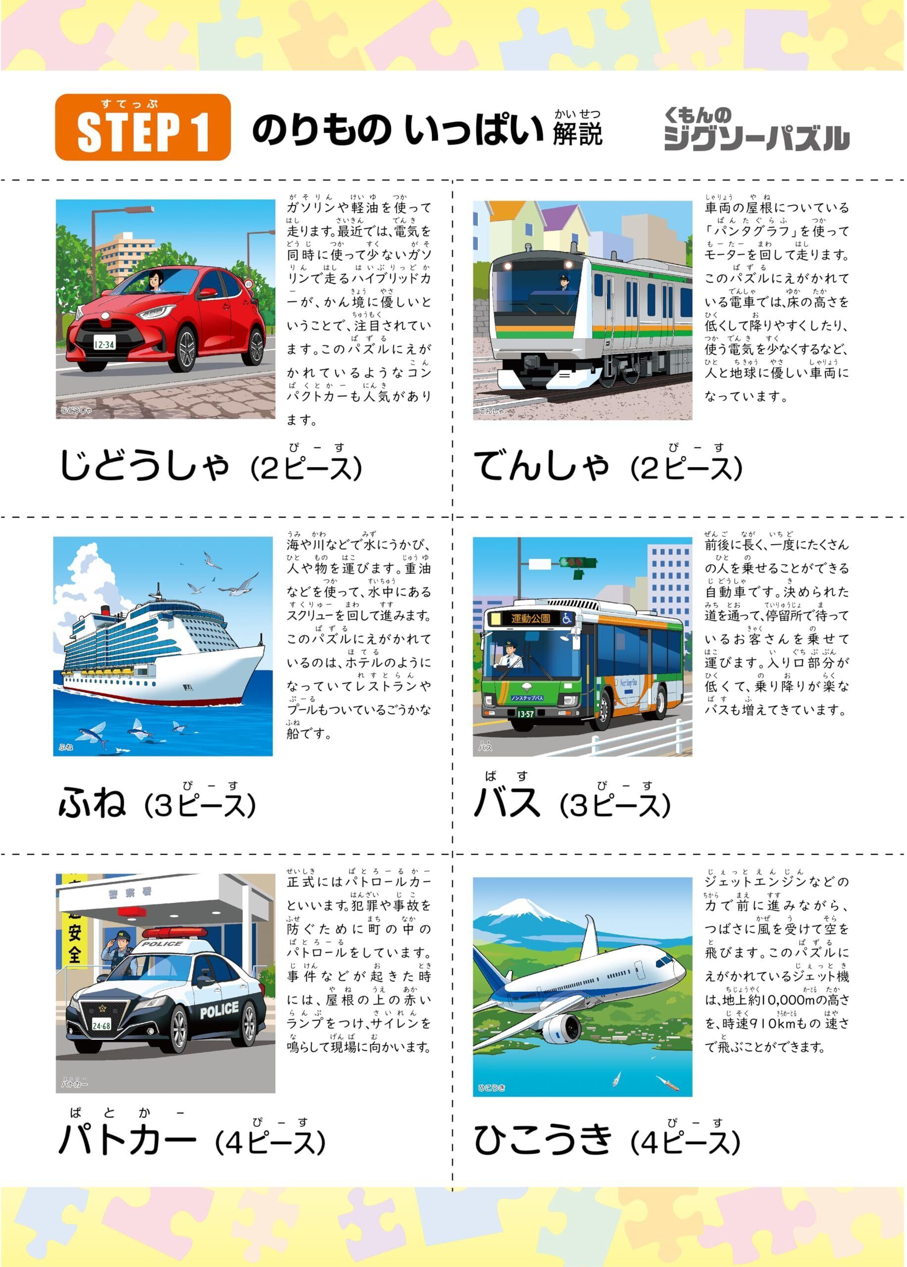 くもん出版(KUMON PUBLISHING) くもんのジグソーパズル STEP1 のりものいっぱい 知育玩具 子供ジグソー 2ピース・3ピース・4ピース・6ピース 1.5歳以上 JP-13 KUMON