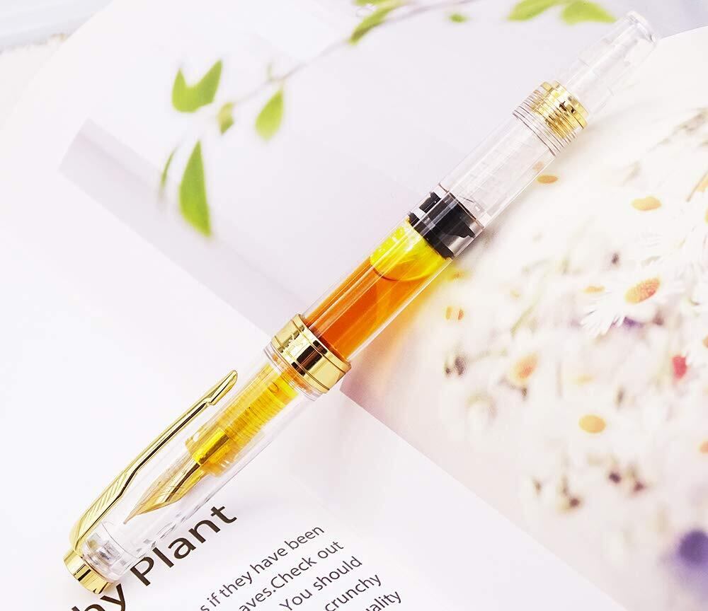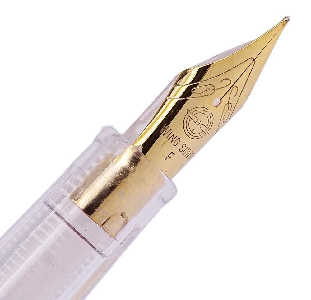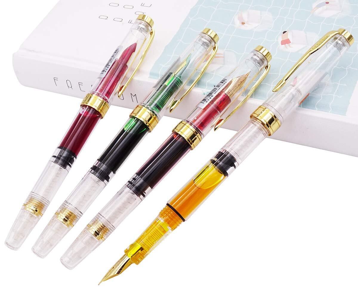 Yongsheng 万年筆 細字 Fine 透明軸 ゴールドトリム スクリュー式 矢印クリップ(4個色セット)