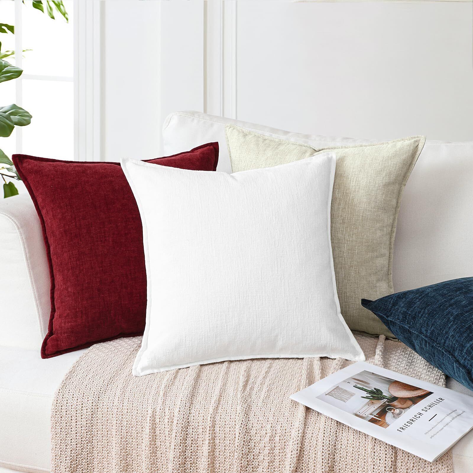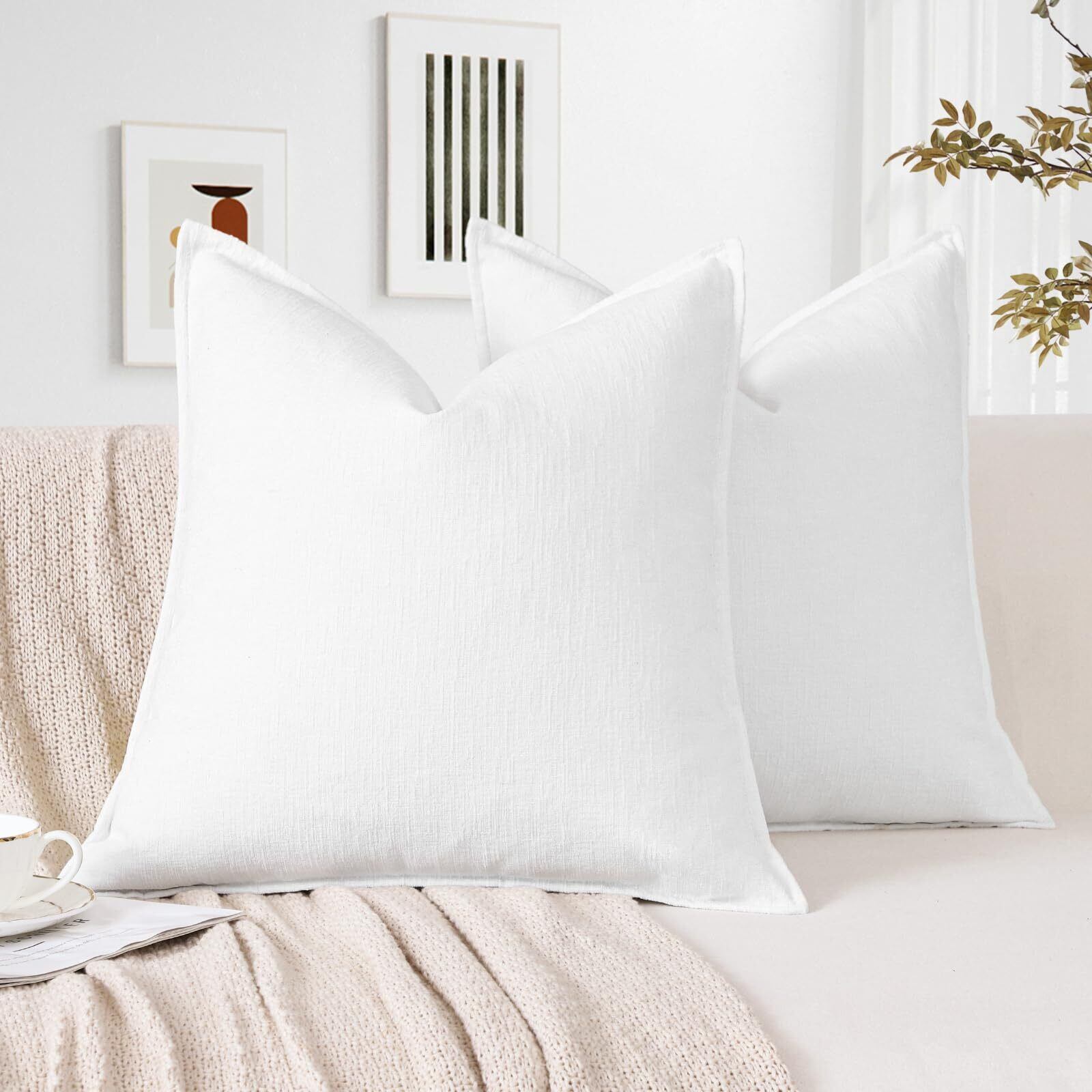 Otostar クッションカバー 北欧 2枚セット 無地 おしゃれ 可愛い シュニール織り シンプル 肌触り良い ファスナー インテリア 装飾用ピローカバー 座布団カバー (45x45cm,ホワイト)