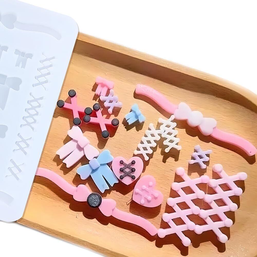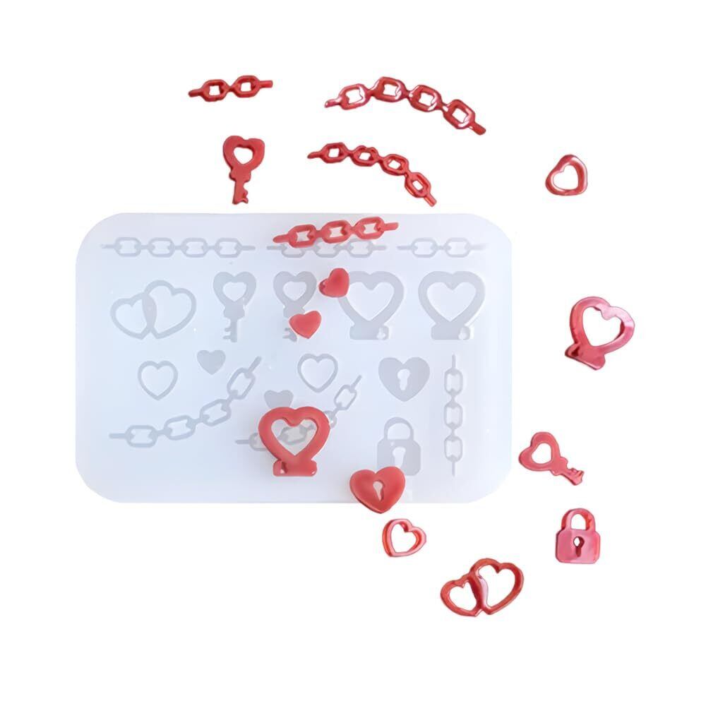 【新着商品】サムコス デコパーツ 2個セット レース シリコンモールド リボン ハート チェーン 鍵 エポキシ樹脂 UVレジン ソフトモールド DIY 手作り 装飾アクセサリー 樹脂 工芸品 作成 | gsmshop