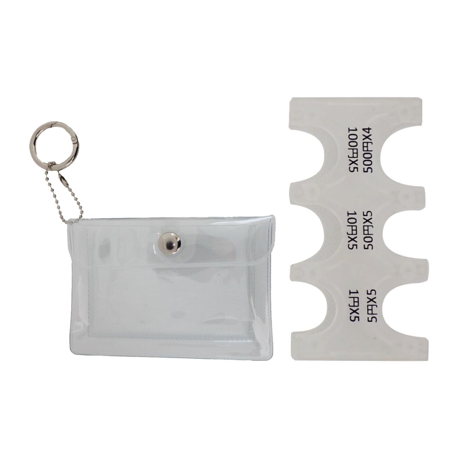 【クリアケース付き】クリアケース付きで、お札の収納も可能です。また、クリアケースにはカードポケットがある為、交通系icカードも入ります!透明素材で中身が見え、おしゃれでかわいいです。また、使いやすい丸型カラビナ付きで、鍵などを付けたり、バッグなどに取り付けることも可能です。