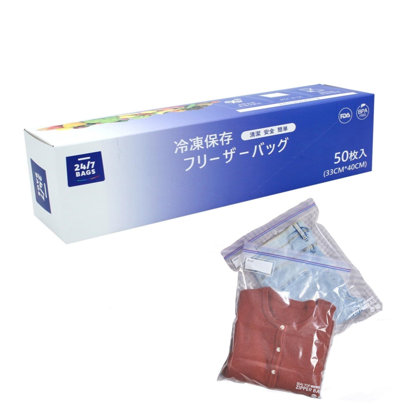 24/7 BAGS フリーザーバッグ xl ジッパー 袋 大容量 50枚 ポリ袋 ジッパー付き 食品 袋 食品ポリ袋 食品保存 ポリ袋 食品保存バック ダブルジッパー 袋 冷凍 袋 食品用 食品 ジッパー 収納バック クリア 耐久性 大きいサイズ xl