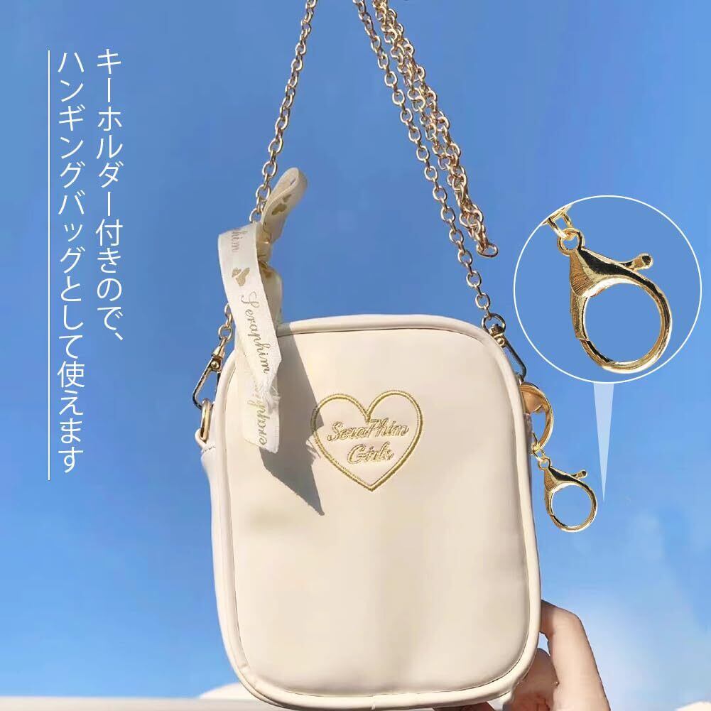 【デザイン】①ショルダーチェーン付き、お出かけに便利です。②キーホルダー付きので、ハンギングバッグとして使えます。