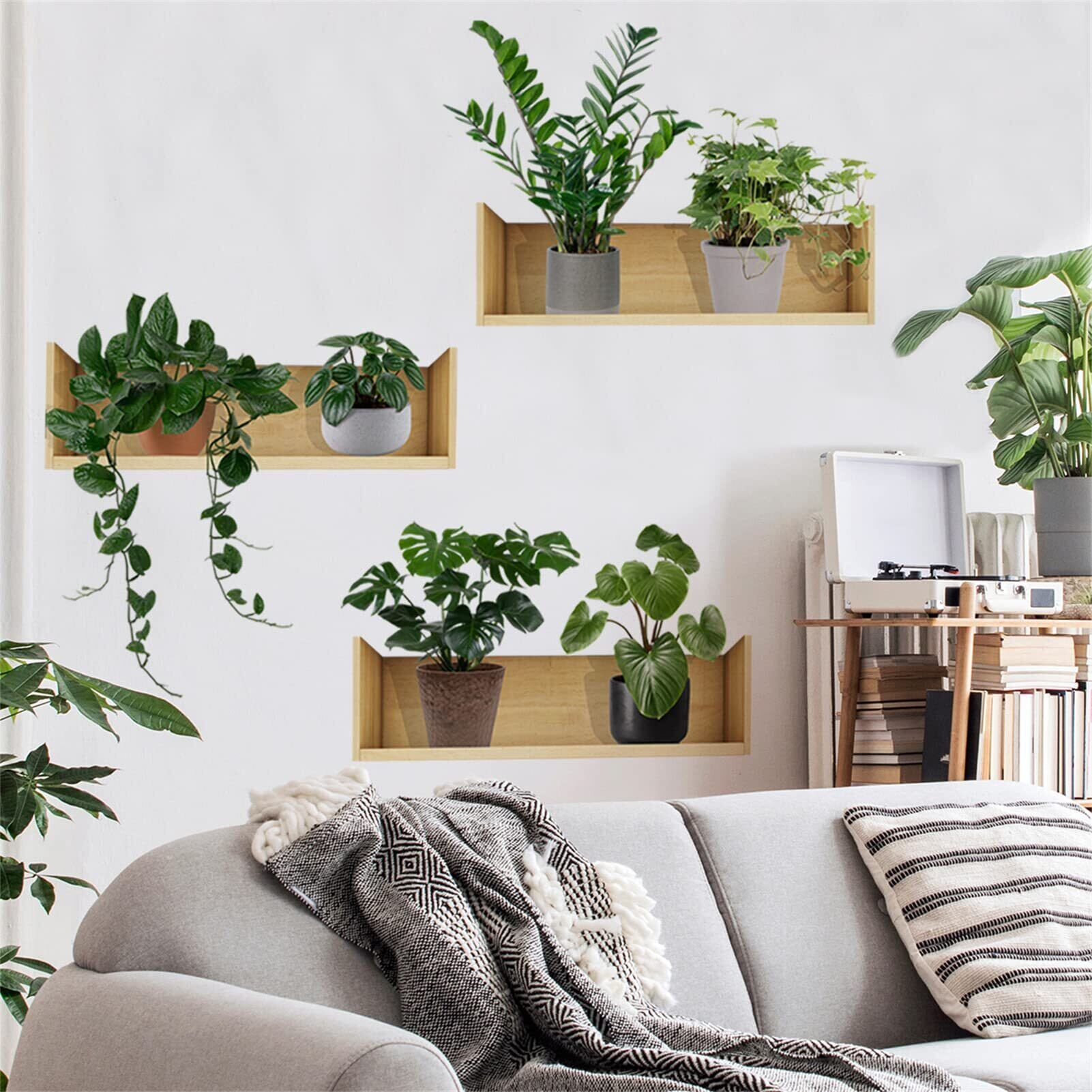 WOHAHA ウォールステッカー 植物 おしゃれ 鉢植え シェルフ 緑 景色 観葉植物 オシャレ 剥がせる 北欧 モノトーン 壁紙シール plant wall stickers 防水 ウォールすてっかー 粘着剤付き 再利用可能