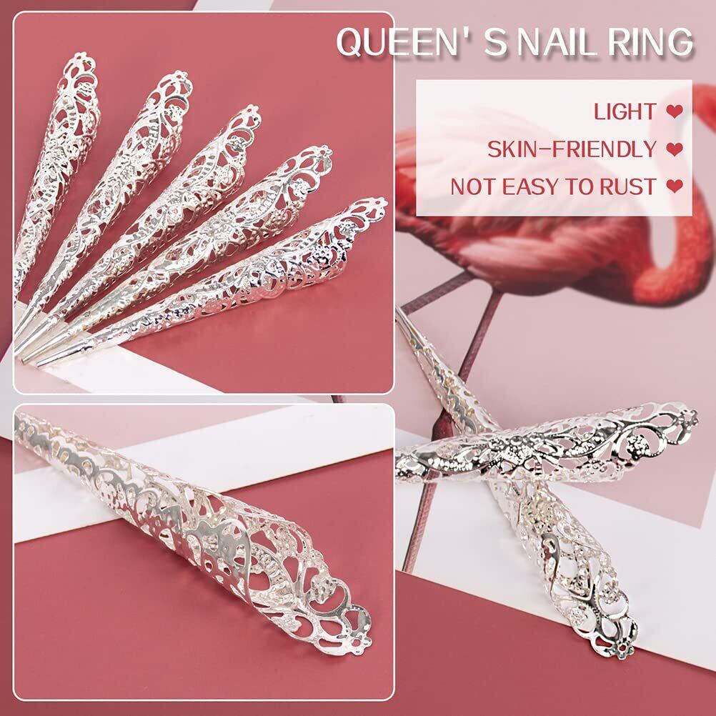 CLFYOU 女性長い爪リングコスプレ アーマーリング ロング ネイルリング 透かし彫り 偽の爪リング フェイクネイルリング 指飾り 指の爪 女性 DIY ネイルアート アクセサリー ハロウィン コスチューム 贈り物