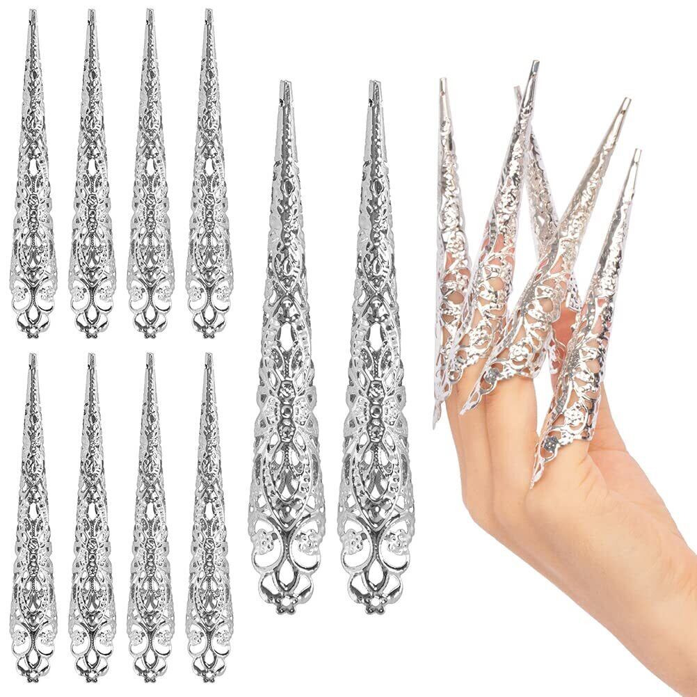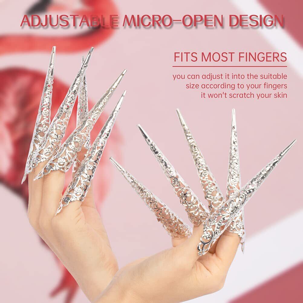 【新春セール】CLFYOU 女性長い爪リングコスプレ アーマーリング ロング ネイルリング 透かし彫り 偽の爪リング フェイクネイルリング 指飾り 指の爪 女性 DIY ネイルアート アクセサリー ハロウィン コスチューム 贈り物 | gsmshop