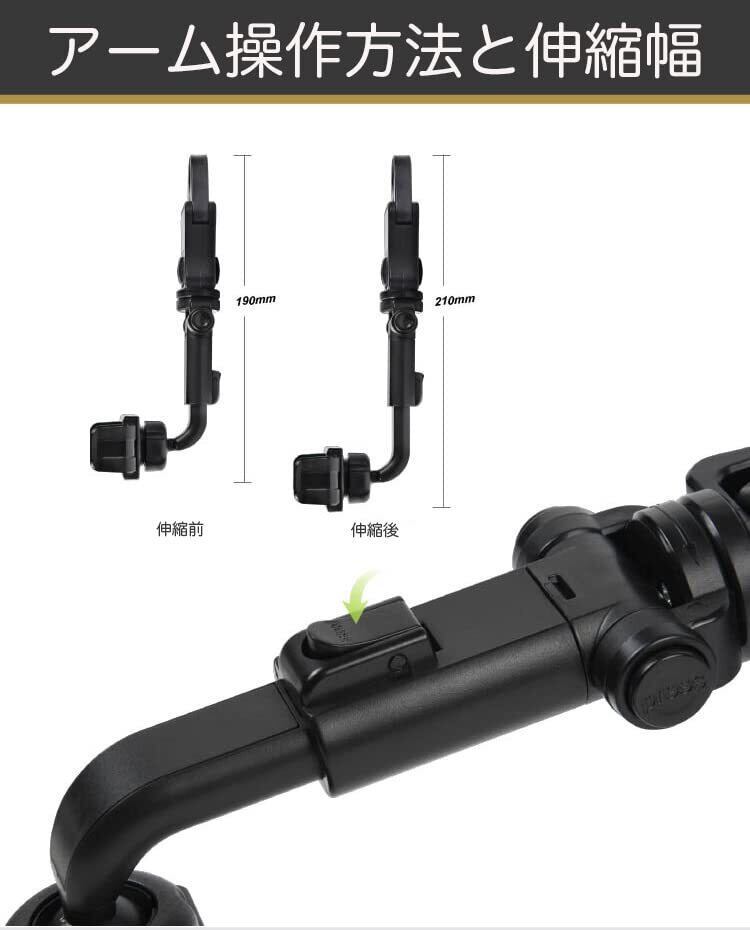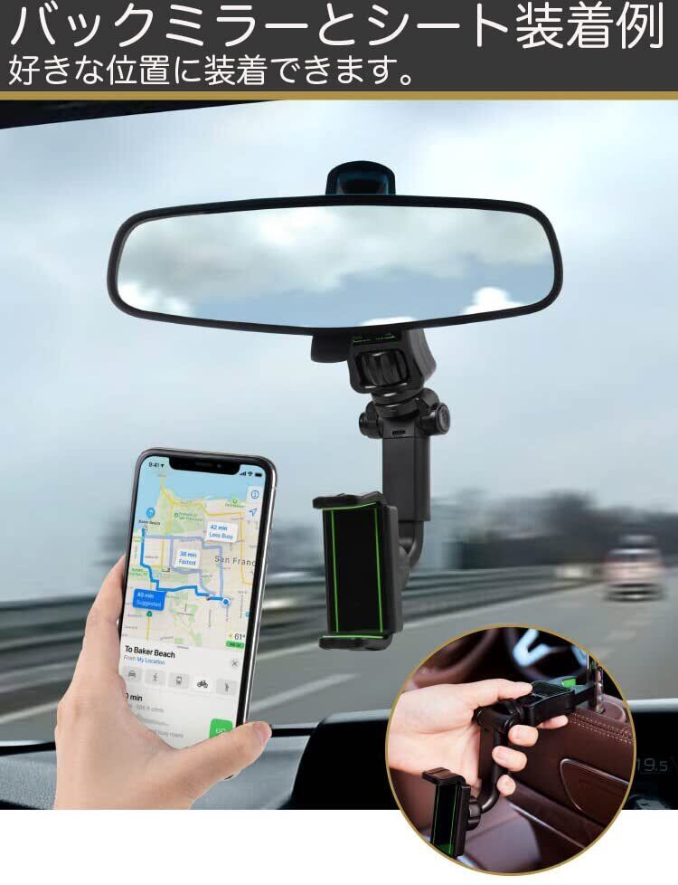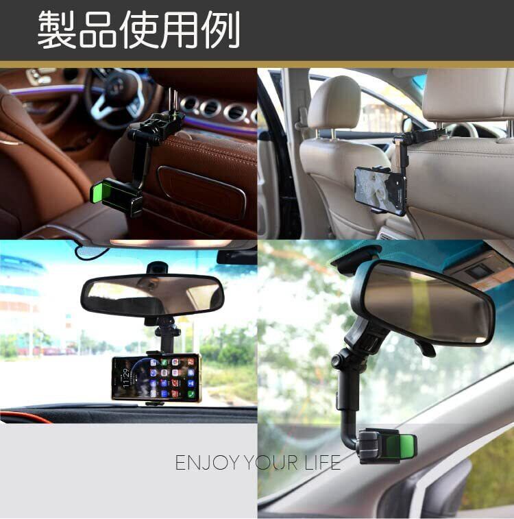 【車載用スマホホルダー】ルームミラーやヘッドレストに装着しスマホを固定。車内のスマホホルダーとして役立ちます。