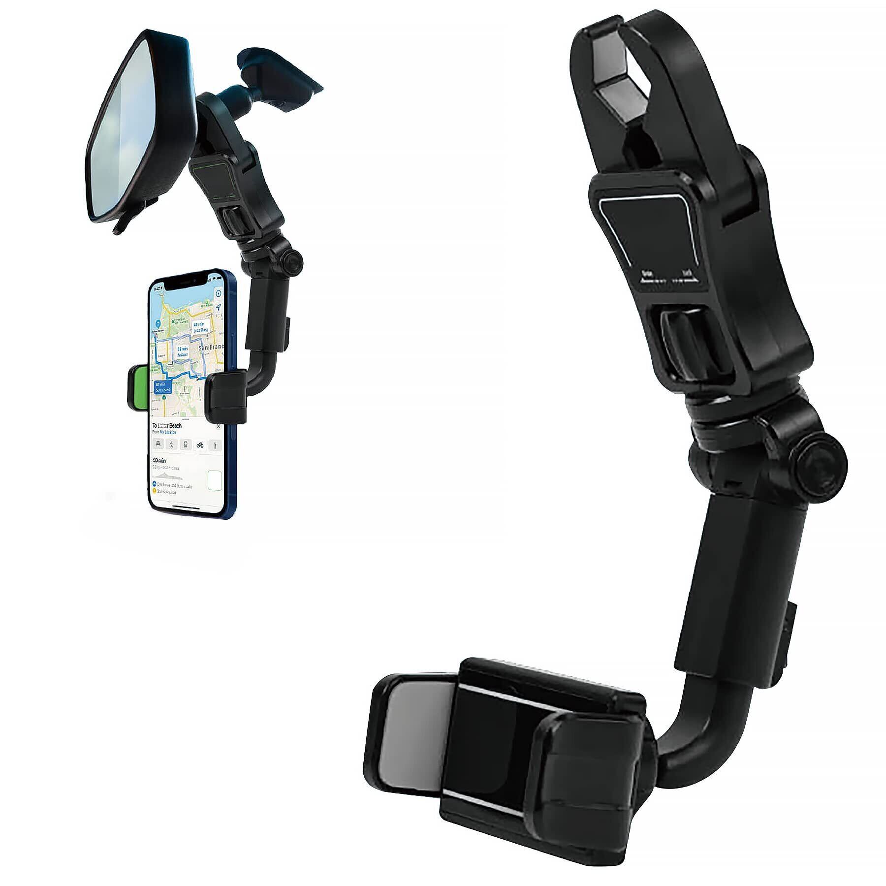 【人気商品】フリースピン バックミラー取付 スマホ アーム ホルダー 車載ホルダー スマホホルダー 片手操作 360度回転 後部座席 ルームミラー スマホスタンド 車 携帯ホルダー スマートフォン スマホ ホルダー 取り付け簡単 調節可能 多機種対応 (Gray) | gsmshop