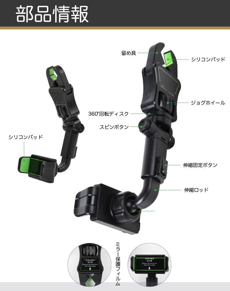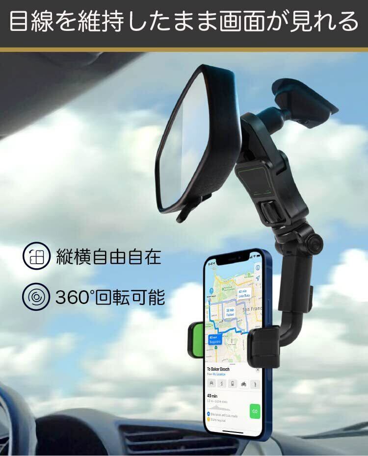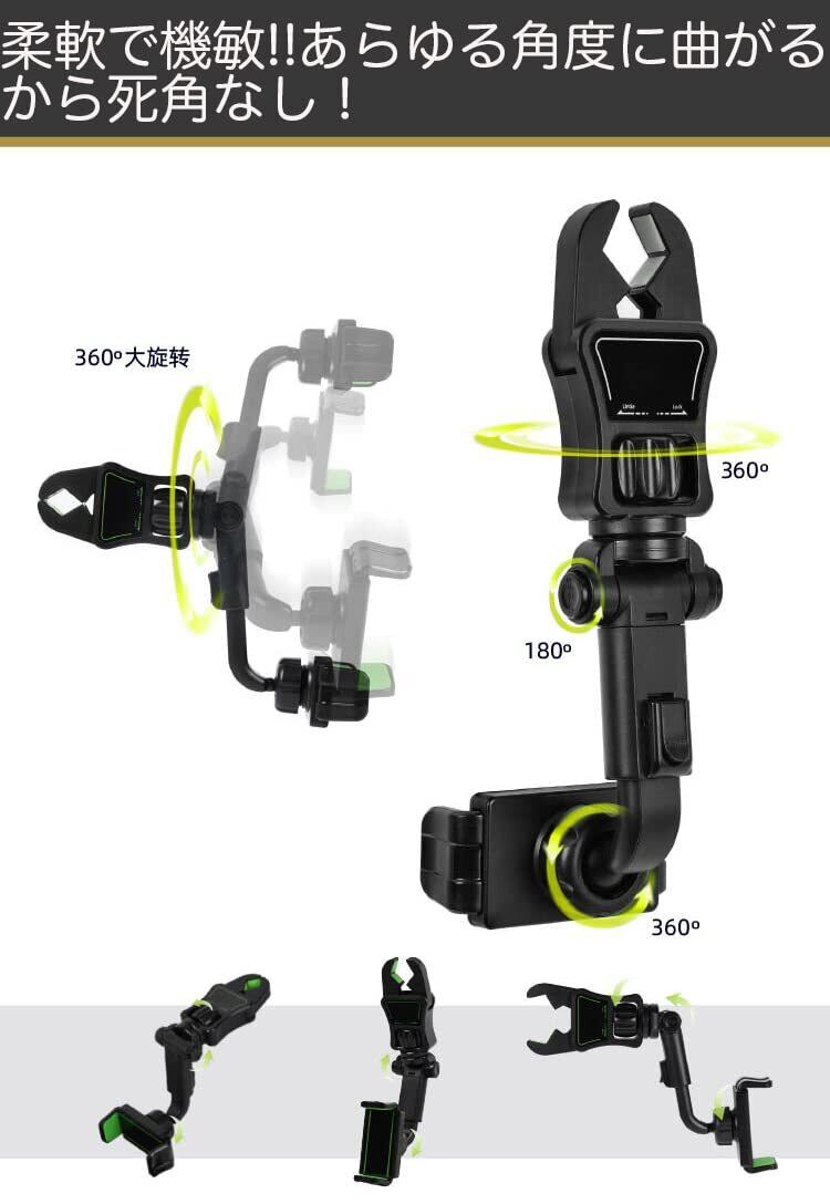 フリースピン バックミラー取付 スマホ アーム ホルダー 車載ホルダー スマホホルダー 片手操作 360度回転 後部座席 ルームミラー スマホスタンド 車 携帯ホルダー スマートフォン スマホ ホルダー 取り付け簡単 調節可能 多機種対応 (Gray)