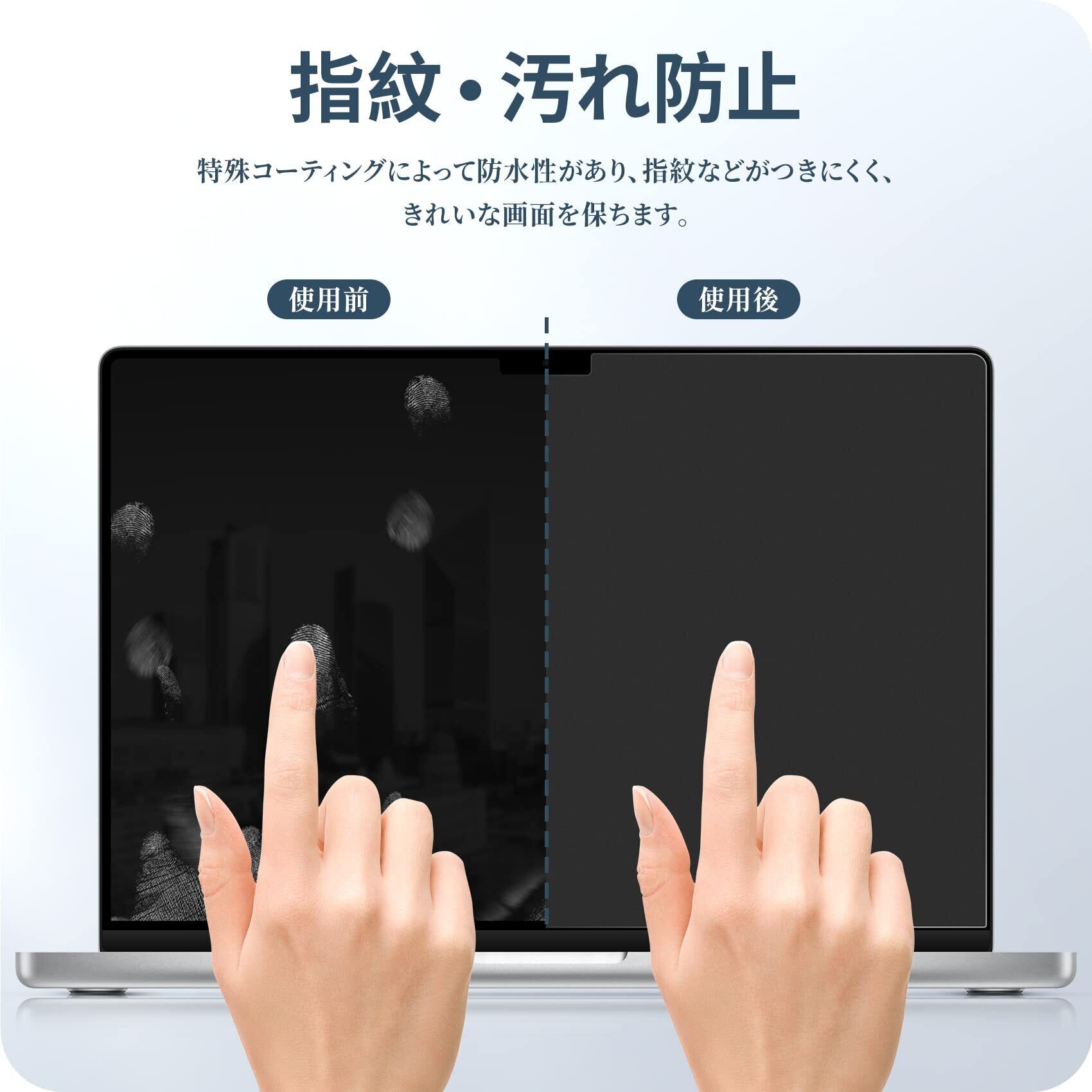 指紋防止:表面にあるアンチグレア及び撥油コーティングによって、指紋が付きにくくなる上、付いたところで、あっさりと拭きとれます。
