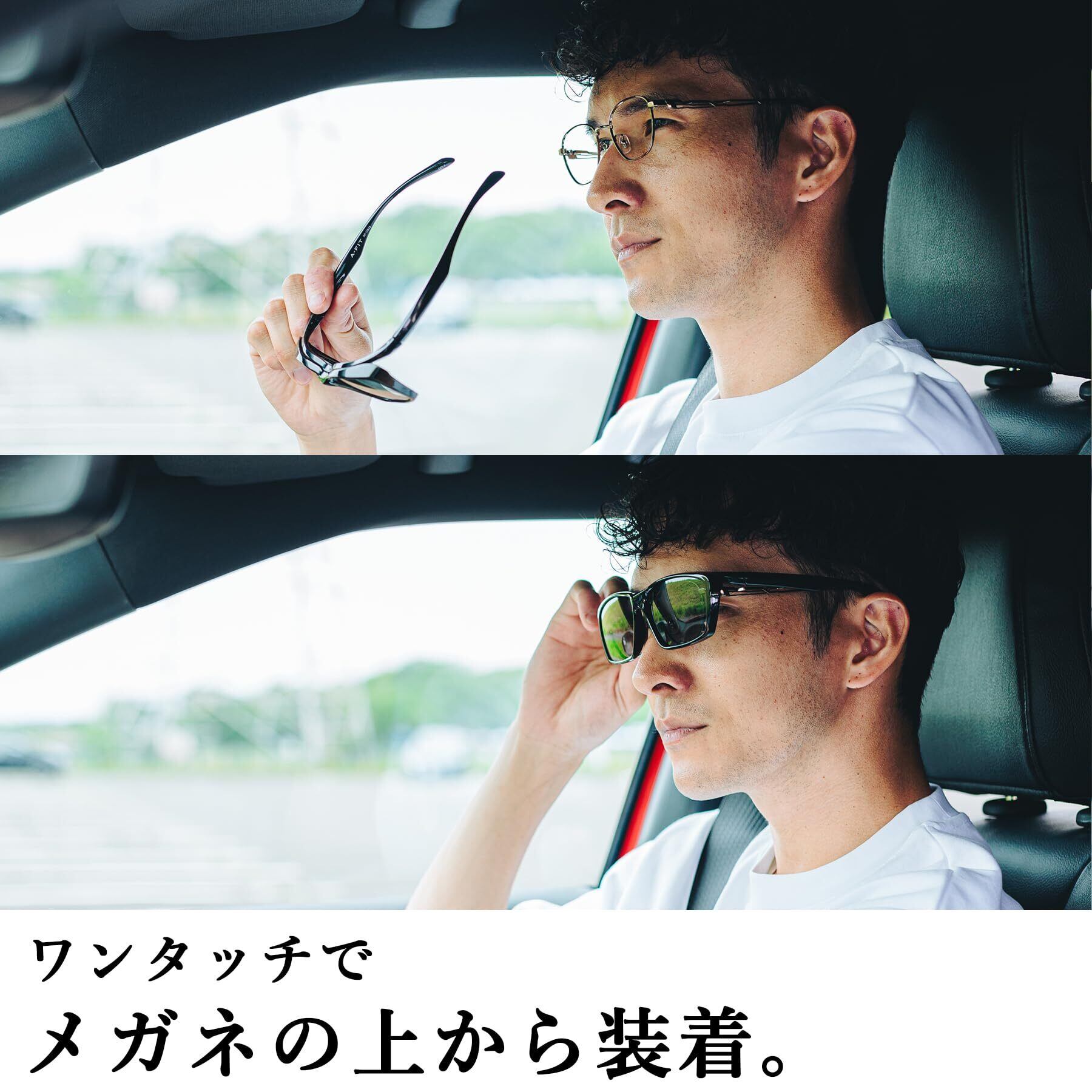 [エーフィット] オーバーグラス 眼鏡の上から サングラス 跳ね上げ式 偏光オーバーサングラス メンズ AF-OS14