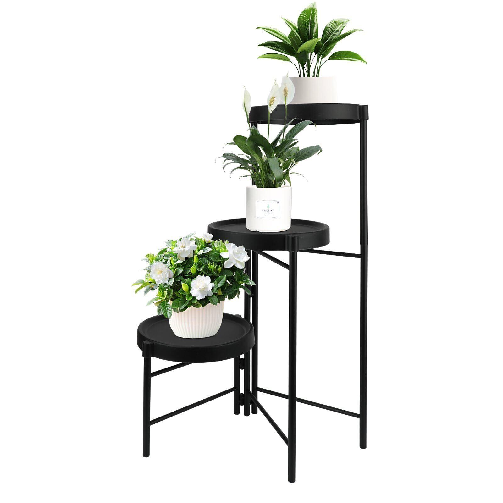 KOMCLUB プランタースタンド フラワースタンド 花台 3段 階段状 植木鉢台 ガーデンラック プランターベース 組み立てが簡単 安定 盆栽棚 観葉植物 鉢置き リビング 玄関 室内 ベランダ ラワースタンド・園芸ラック 飾り棚 (ブラック)