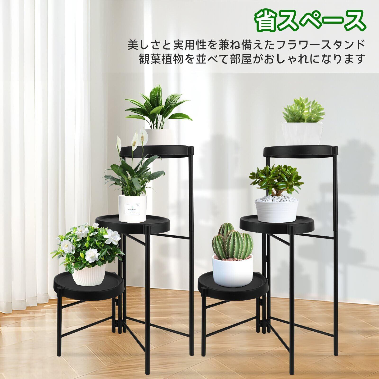 【おしゃれな見た目】美しさと実用性を備えた収納・装飾スタンドで、小さな設置面積で省スペース。植物の世話も快適にサポートし、フラワースタンドです。